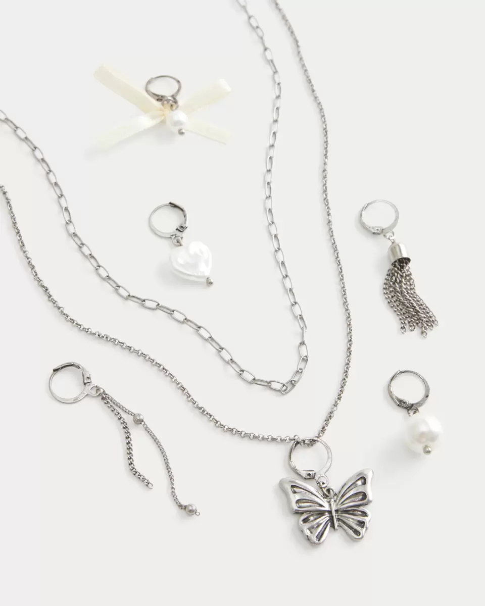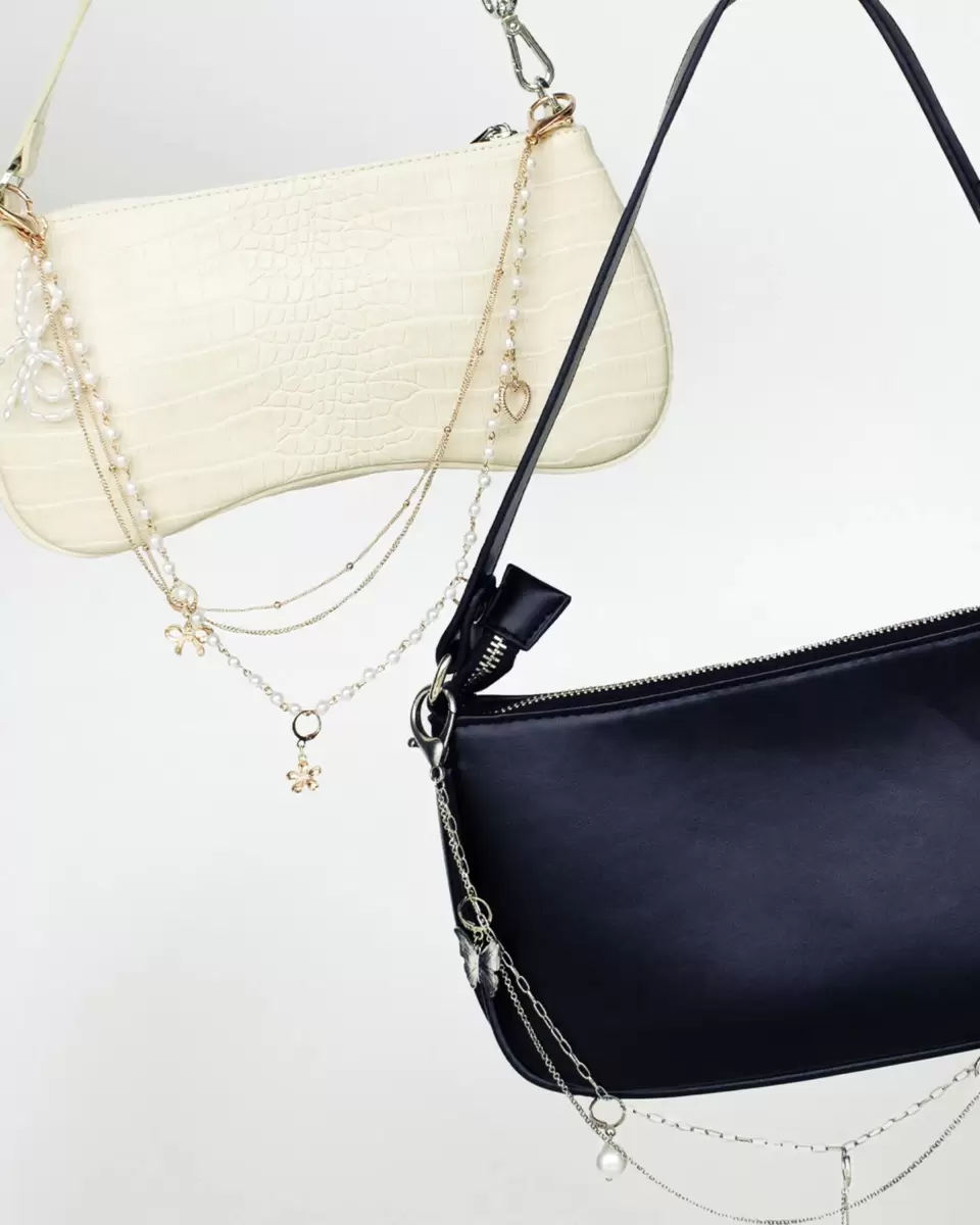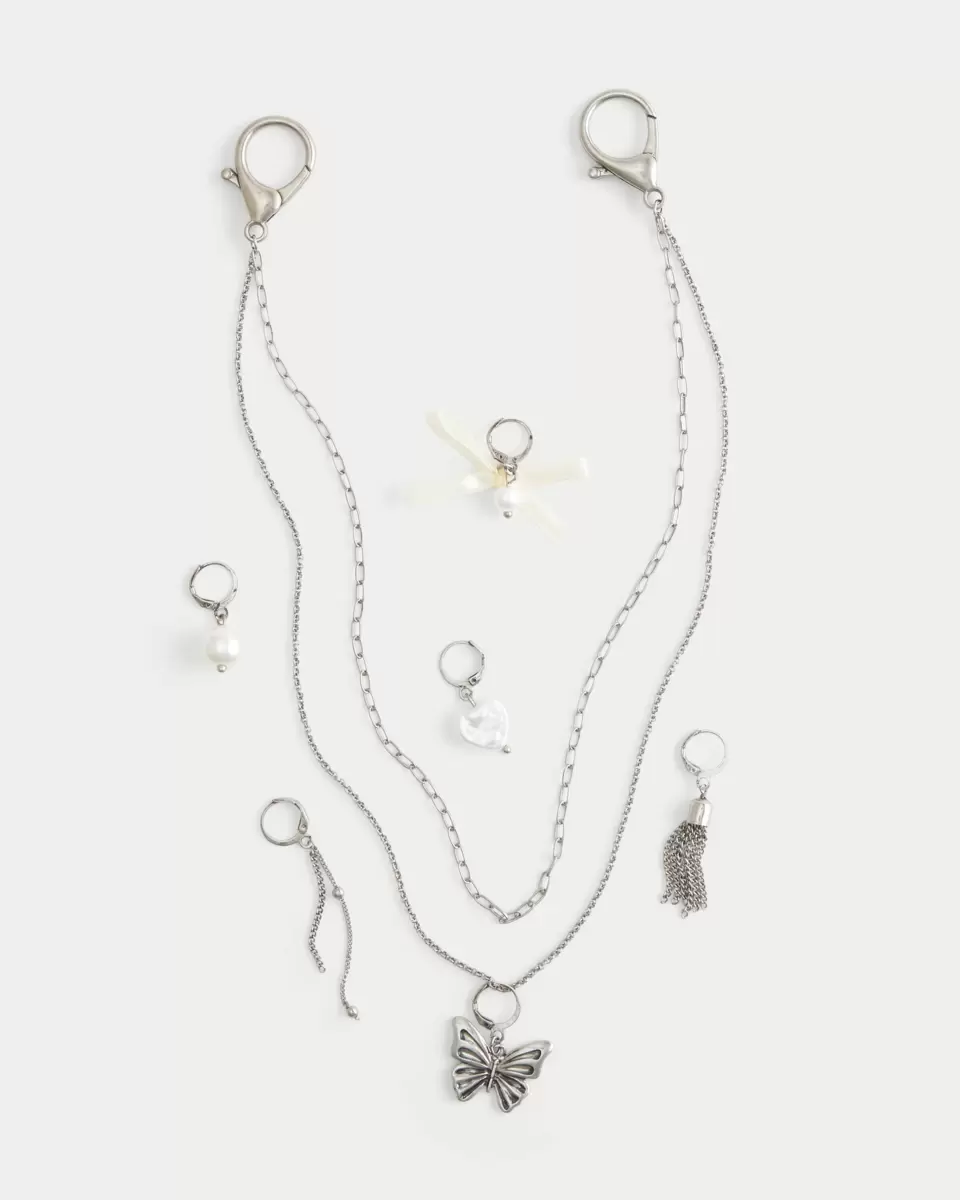 En uppsättning söta metallberlocker med plastdetaljer i pärlstil.
