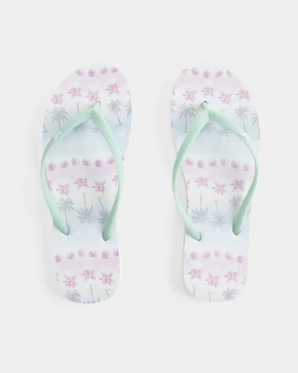 Söta flip flops med mjuka fotbäddar och gummiöverdelar. Logotypdetaljer, strandgrafik.
