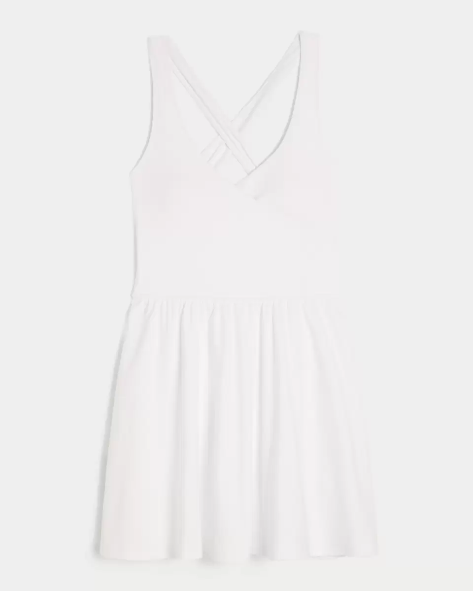 En ultrabekväm aktiv klänning designad i vårt andningsbara, 4-vägs stretch, fuktavledande Recharge-tyg med en supermjuk, borstad känsla. Inbyggda shorts och sport-bh, omlott framtill och grimremmar som korsar ryggen. Importerad.