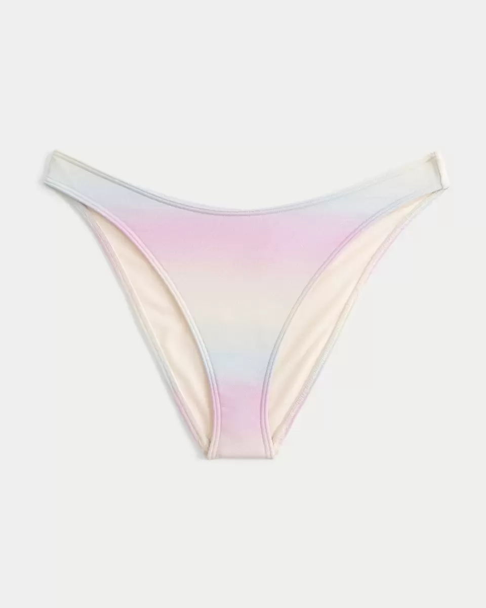 En söt bikinitrosa i mjukt badtyg med skimmer och fräck täckning. Höga ben, medelhög siluett, ombre-färgning. Importerad.