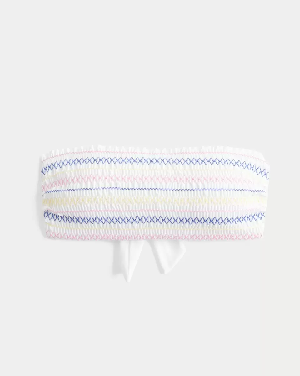 Denna söta bikinitopp är designad med en bandeau-silhuett och har popfärgade sömmar. Mjukt smockat simtyg, knytstängning, avtagbar stoppning. Importerad.