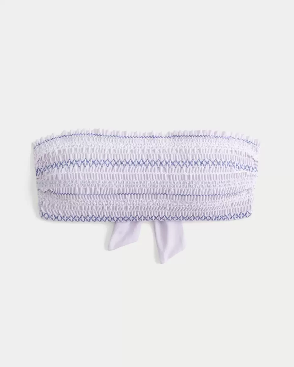 Denna söta bikinitopp är designad med en bandeau-silhuett och har popfärgade sömmar. Mjukt smockat simtyg, knytstängning, avtagbar stoppning. Importerad.