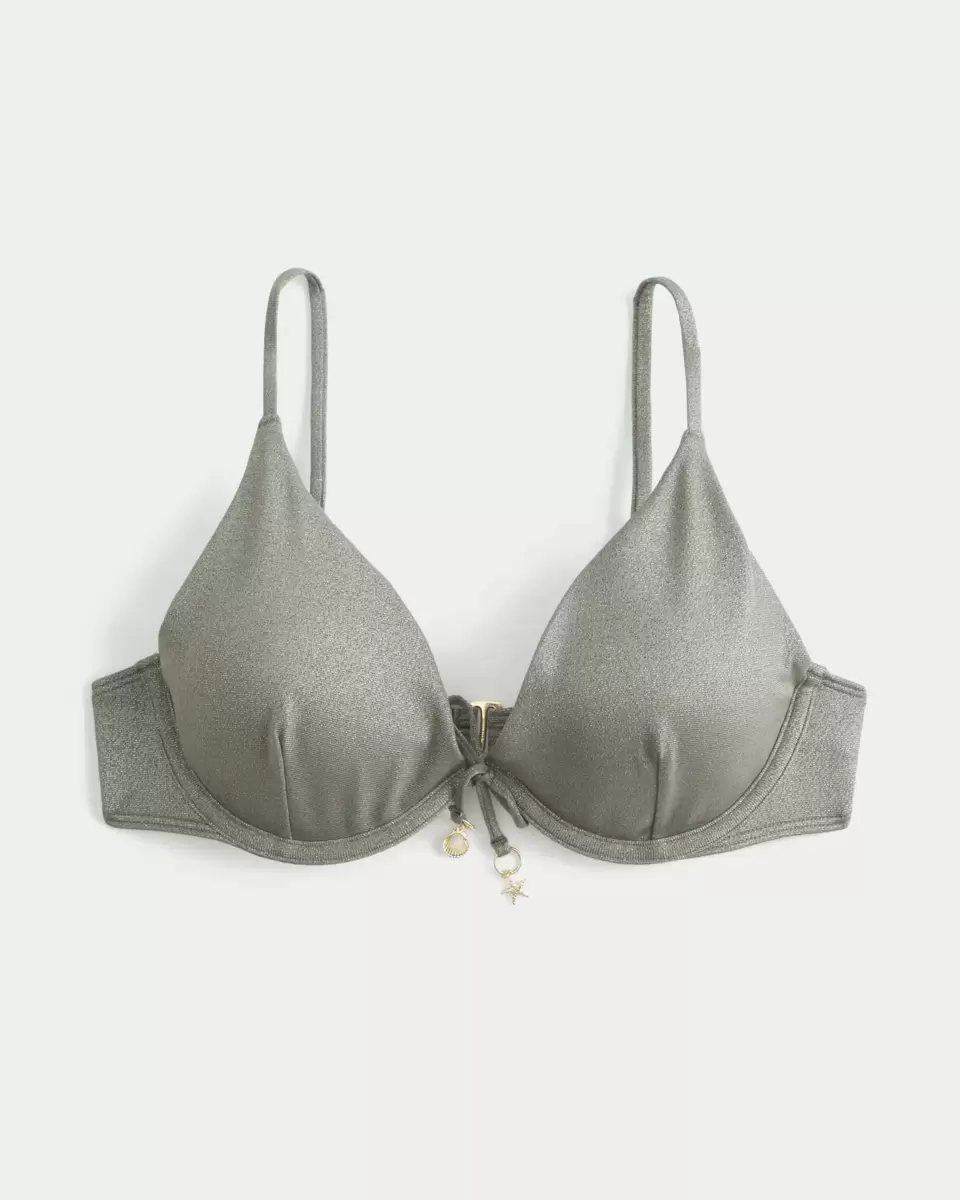Denna söta bikinitopp är gjord av mjukt simtyg med skimmer och har metalldetaljer. Justerbara remmar, knytdetaljer framtill, stängning med svankrok, bygelsiluett. Importerad.