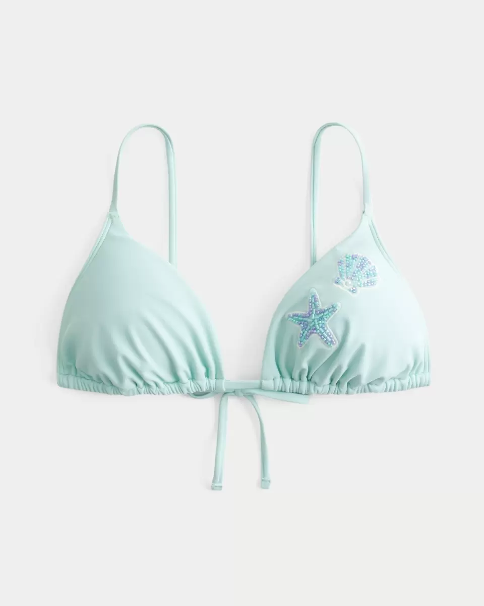 En söt bikinitopp i en triangelsiluett, med justerbara axelband och broderade lappar med pärldetaljer. Knytstängning, avtagbar stoppning. Importerad.