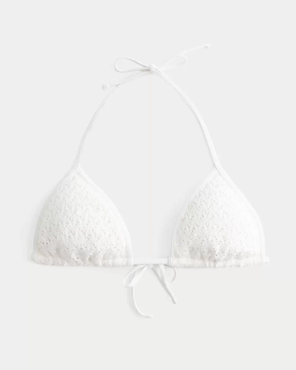 En söt bikinitopp i mjukt virkat simtyg med paljettdetaljer. Knytstängning, grimma, triangelsiluett, avtagbar stoppning. Importerad.