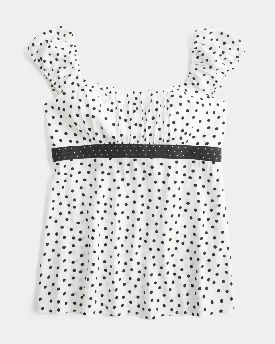 En flytande och supermjuk babydoll-topp med en vacker satängknytdetalj. Rynkade detaljer genom bysten, mjuk smockad rygg. Ser perfekt ut klädd upp eller ner! Easy Fit. Importerad.