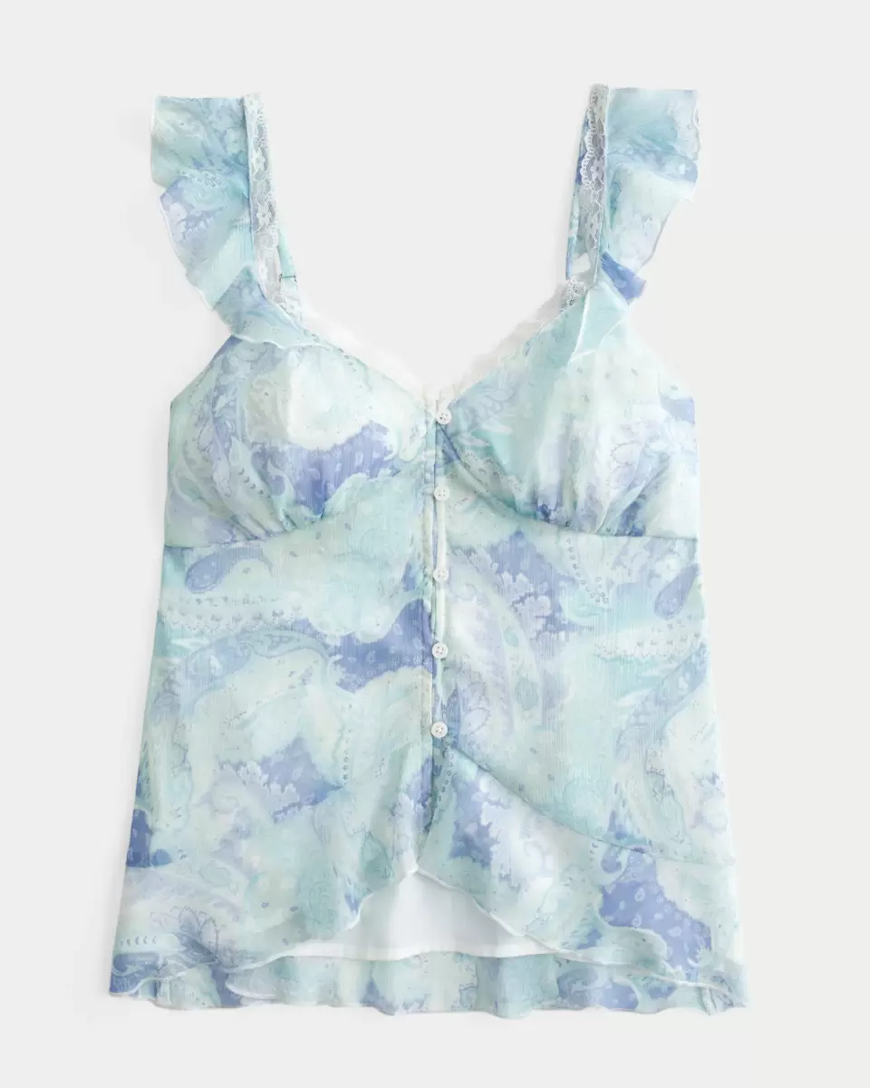 Tröjan är gjord av supermjukt chiffongtyg och har en asymmetrisk fåll, volanger och knappdetaljer. Mjuk smockad rygg, snygg spetskant längs halsen, ser perfekt ut klädd upp eller ner! Easy Fit. Importerad.