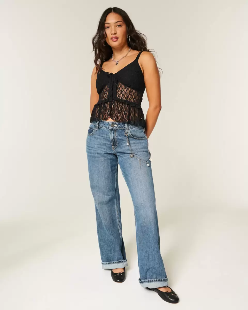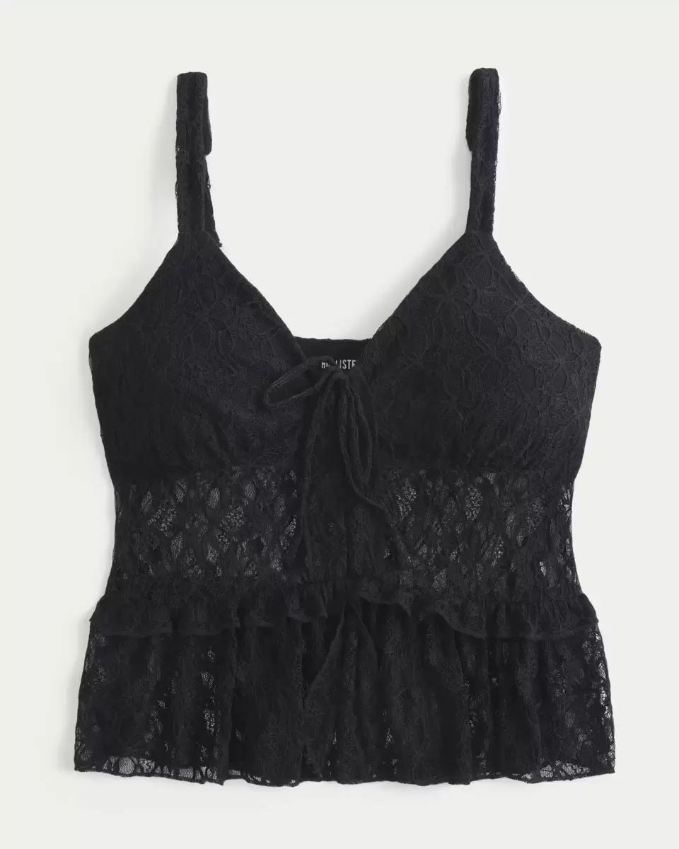 Vacker och supermjuk, den här toppen har spets och knytband fram med subtila flyktiga detaljer. Avtagbara bystkuddar, justerbara remmar, ser perfekt ut klädd upp eller ner! Slim Fit. Importerad.