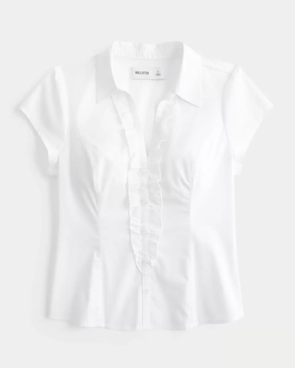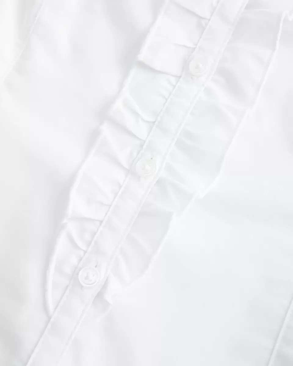 En mjuk, klassisk kortärmad skjorta i smokingstil med volanger längs den främre knappstängningen. Krage, sömdetaljer för en skräddarsydd look. Slim Fit. Importerad.