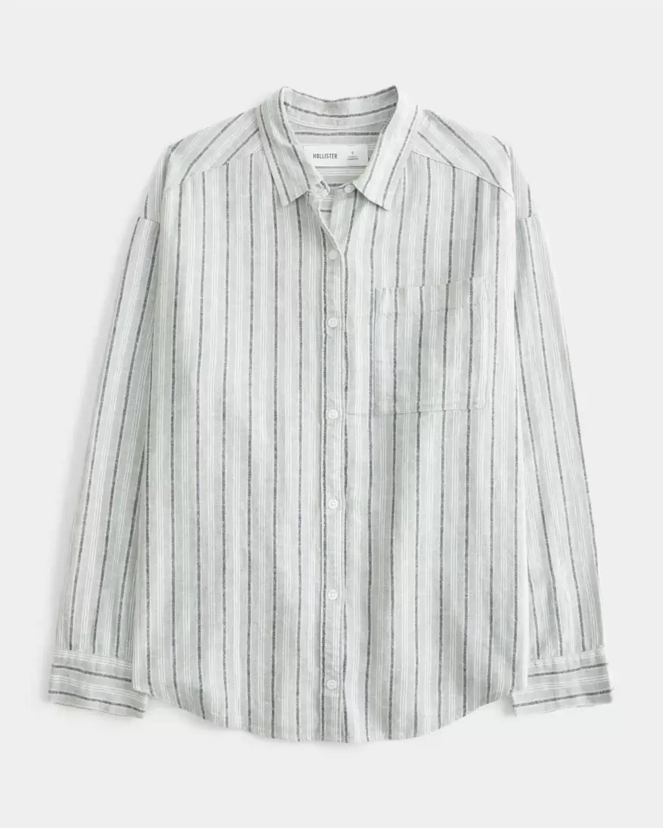 Din nya favoritskjorta är gjord i en mjuk linneblandning och är designad med hel knappstängning och vänster bröstficka. Böjd fåll, krage. Överdimensionerad passform. Importerad.