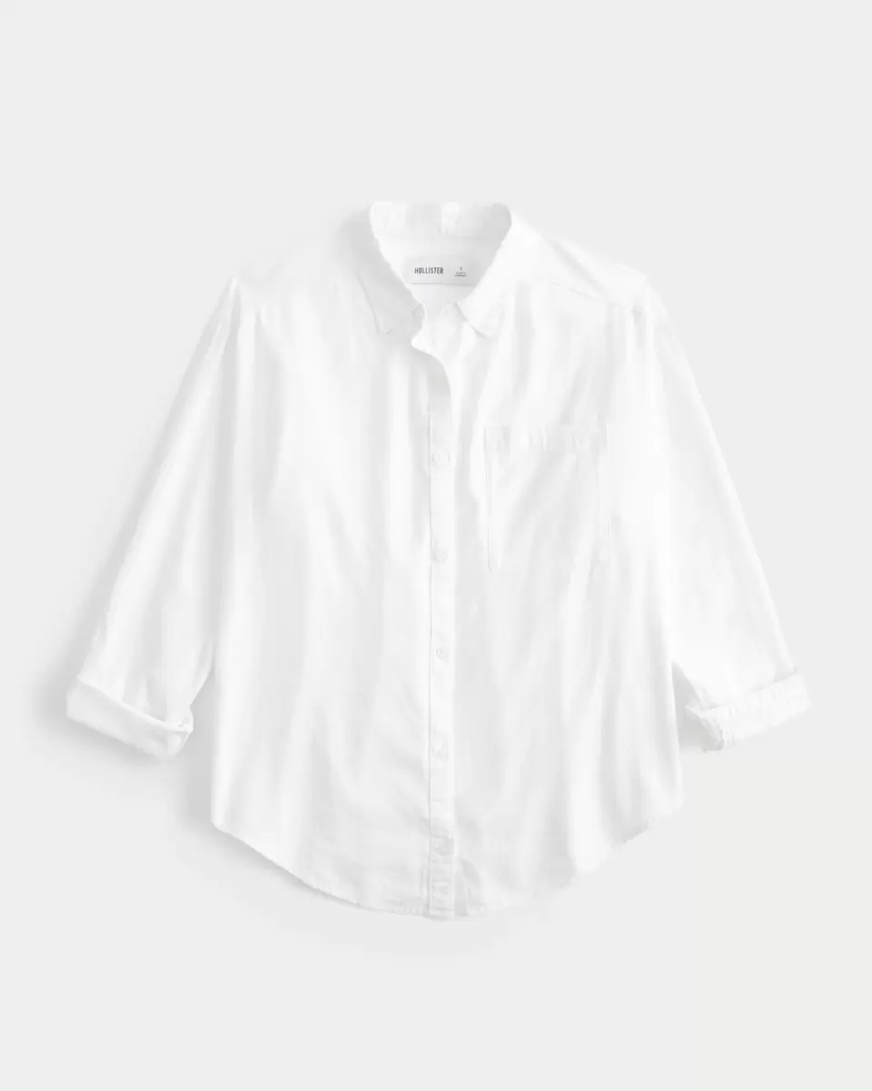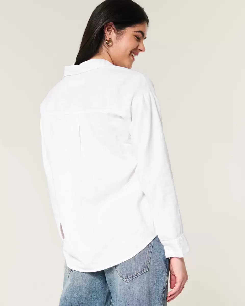 Din nya favoritskjorta är gjord i en mjuk linneblandning och är designad med hel knappstängning och vänster bröstficka. Böjd fåll, krage. Överdimensionerad passform. Importerad.