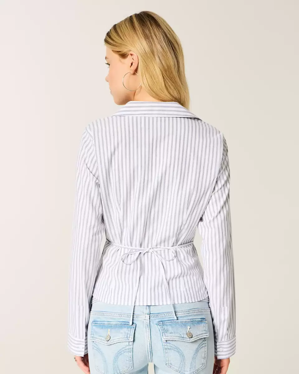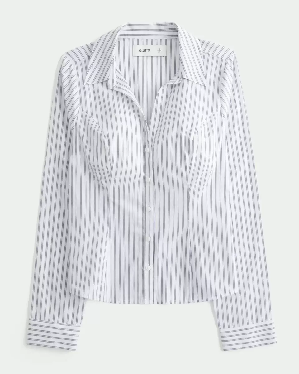 En Y2K-inspirerad, slimmad långärmad, stretchig poplinskjorta med krage, sömmar och justerbar knytband baktill. Hel knappstängning. Slim Fit. Importerad.