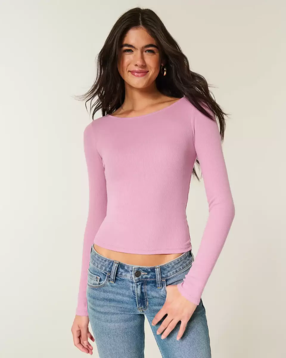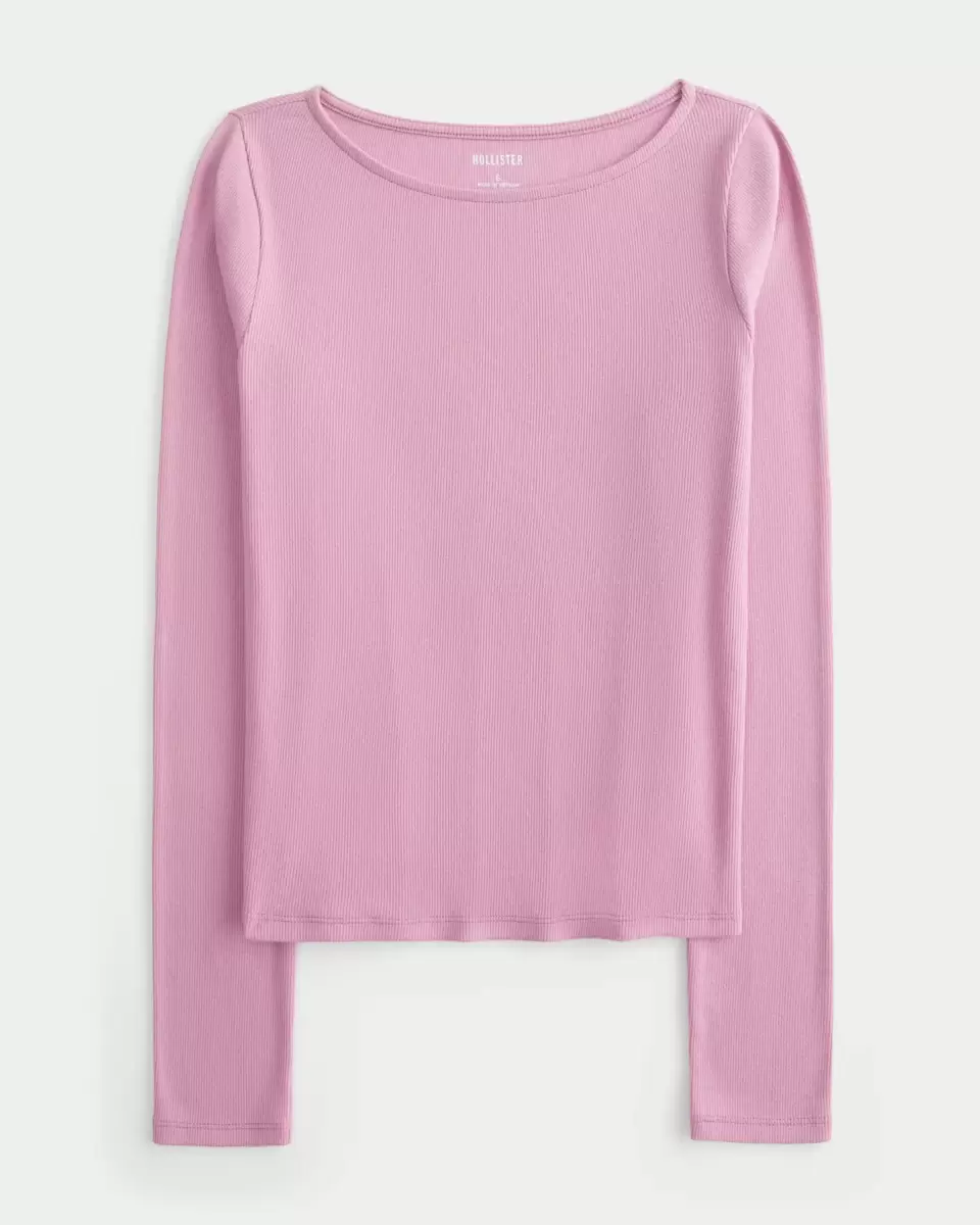 En mysig och supermjuk långärmad topp i bomullsblandning med sned halsringning. Slim Fit. Importerad.