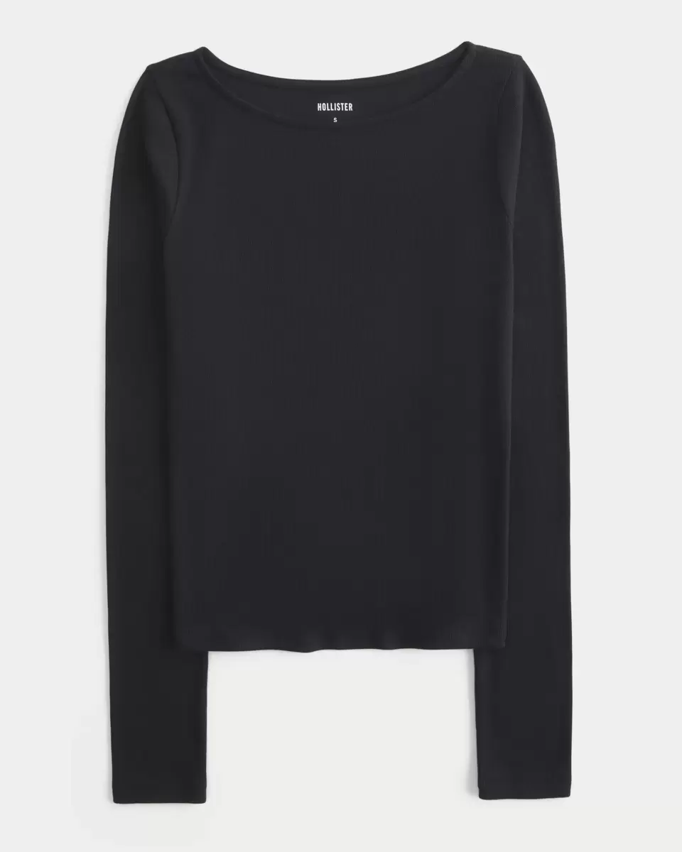 En mysig och supermjuk långärmad topp i bomullsblandning med sned halsringning. Slim Fit. Importerad.