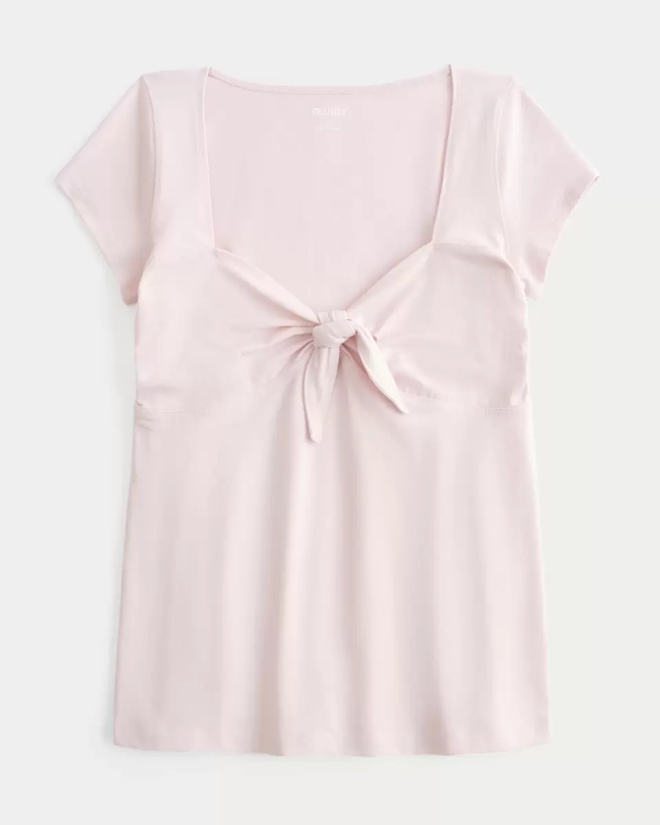 En flytande och supermjuk babydoll-topp med en söt knytdetalj vid bysten. Korta ärmar, längre längd. Easy Fit. Importerad.