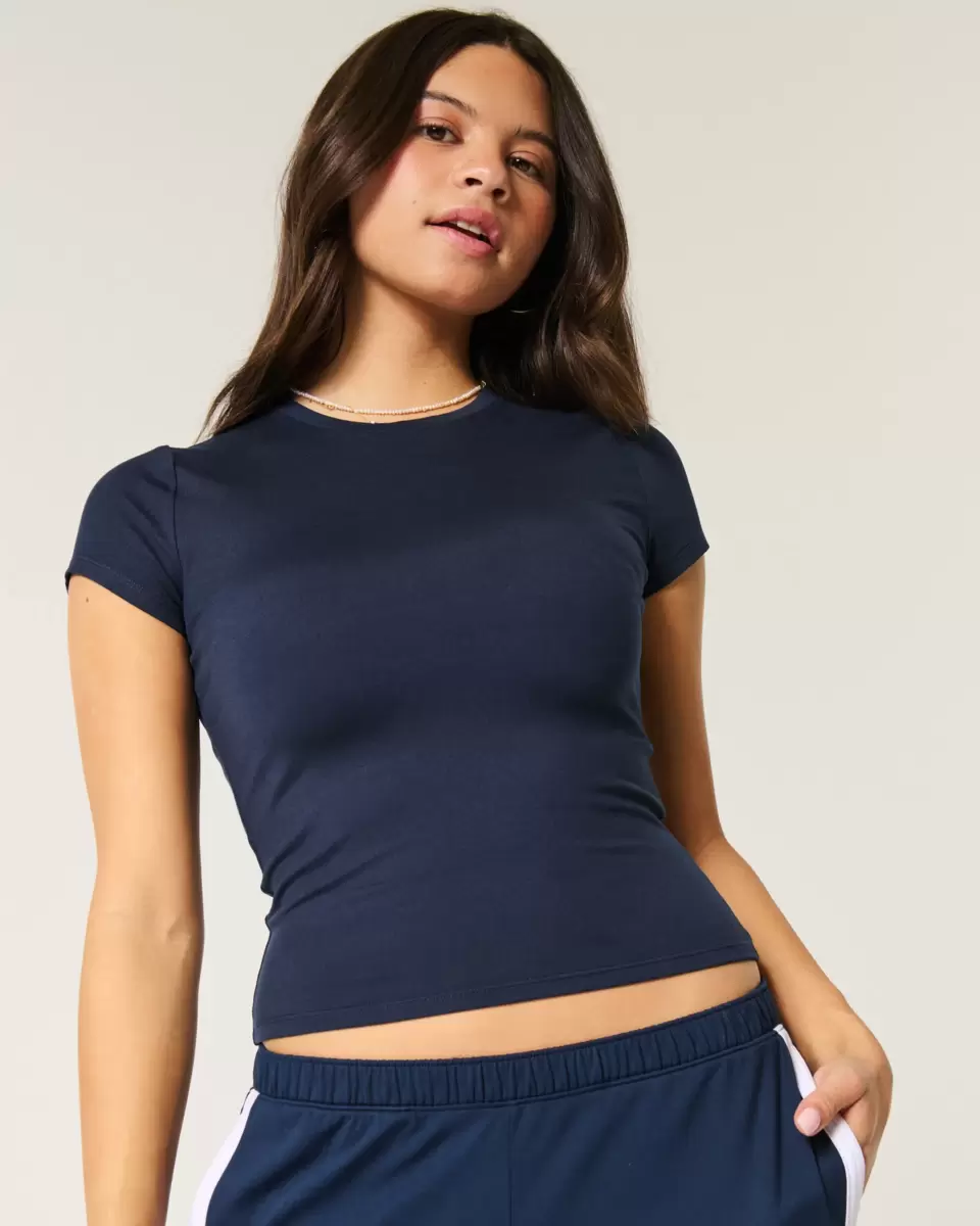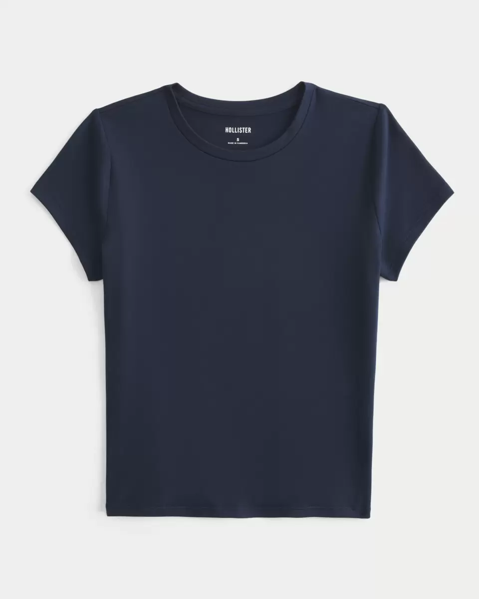 Söt och bekväm, den här babytröjan är gjord av mjukt stretchtyg med en sömlös look och känsla. Rund halsringning, korta ärmar. Slim Fit.