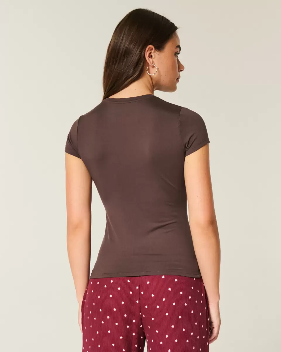 En söt och bekväm babytröja i supermjukt tyg med en sömlös look och känsla, designad med en något krympt siluett. Rund halsringning, korta ärmar. Importerad.