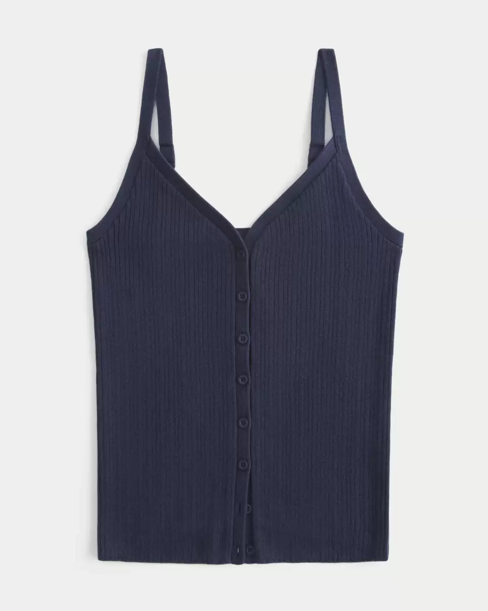 En söt och mysig tank i supermjukt tröjastickat tyg med hel knappstängning. V-ringning, justerbara remmar. Importerad.