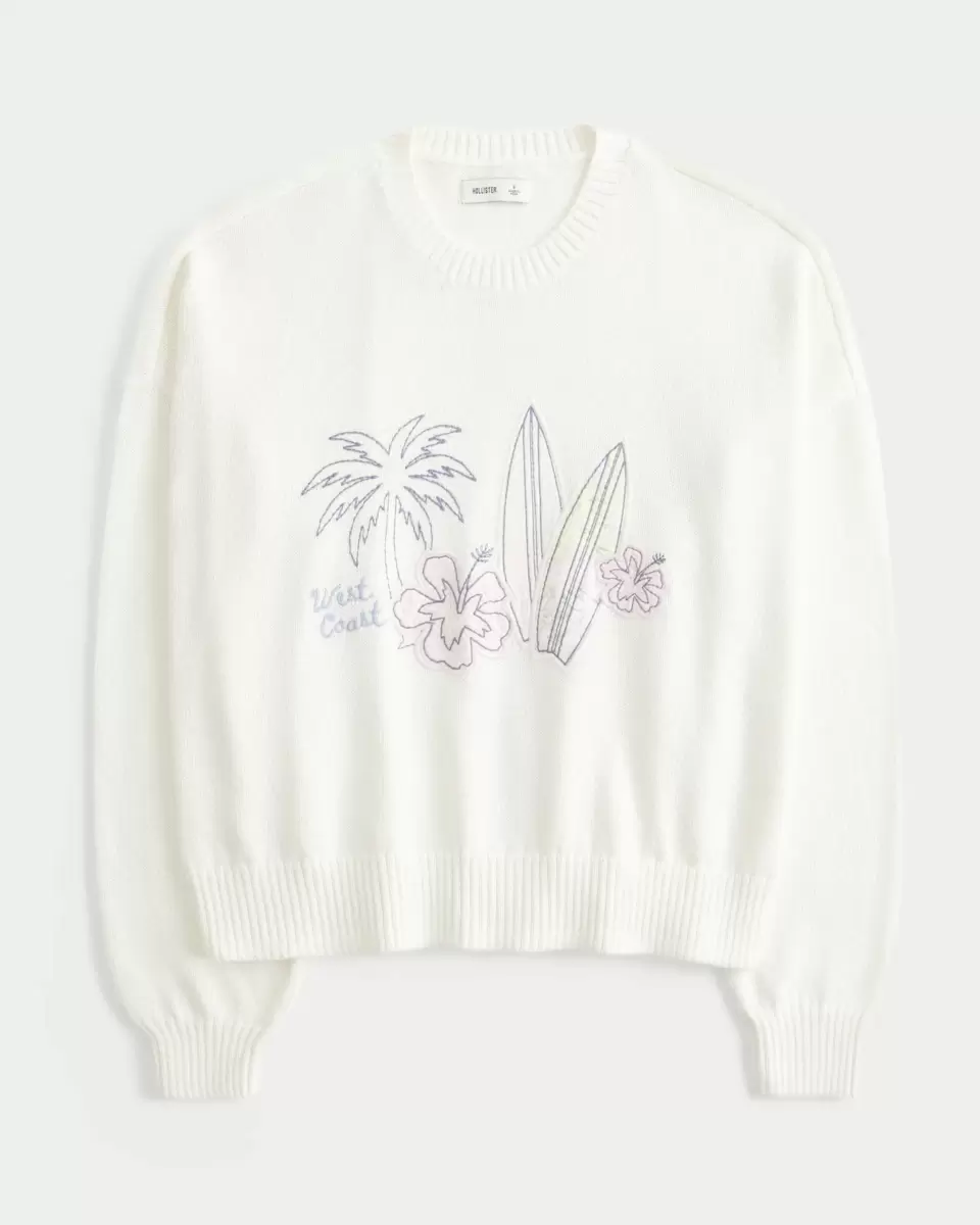 En supermjuk och mysig tröja med grafiska broderier och applikationer på västkusten. Rund halsringning, långa ärmar, ribbad kant. Easy Fit. Importerad.