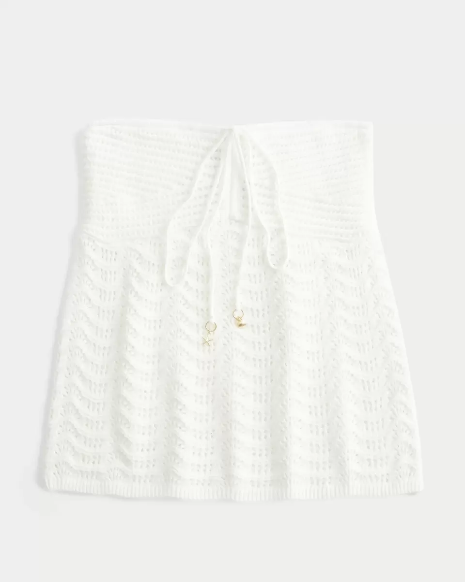 Söt och supermjuk, denna axelbandslösa topp är gjord av mysigt virkat tyg och har en knyt framtill med charmdetaljer. Kan bäras som grimstopp! Easy Fit. Importerad.