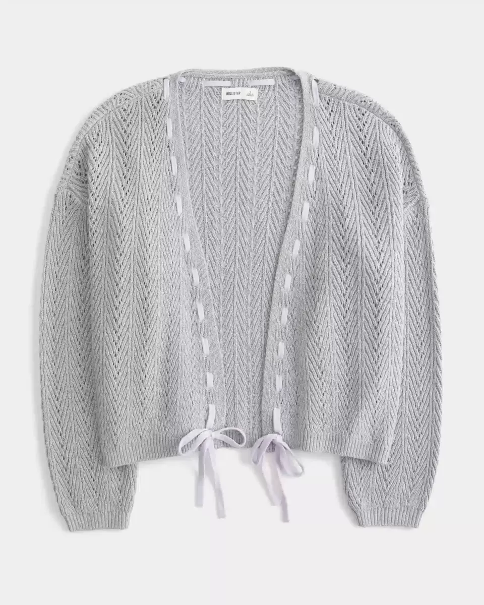Denna supermjuka koftan har en vacker knytdetalj längs halsen. Ingen stängning, klassisk textursöm, ribbade fållar, långa ärmar. Easy Fit. Importerad.