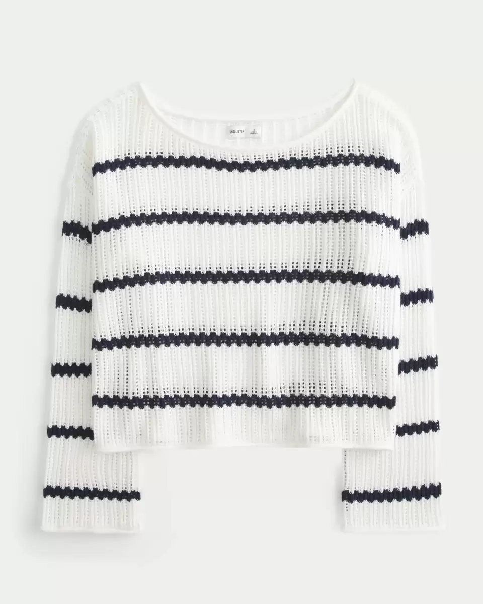 En supermjuk tröja i virkat tyg, med sömnad struktur och ett randigt mönster. Avslappnad rund halsringning, långa ärmar. Easy Fit. Importerad.