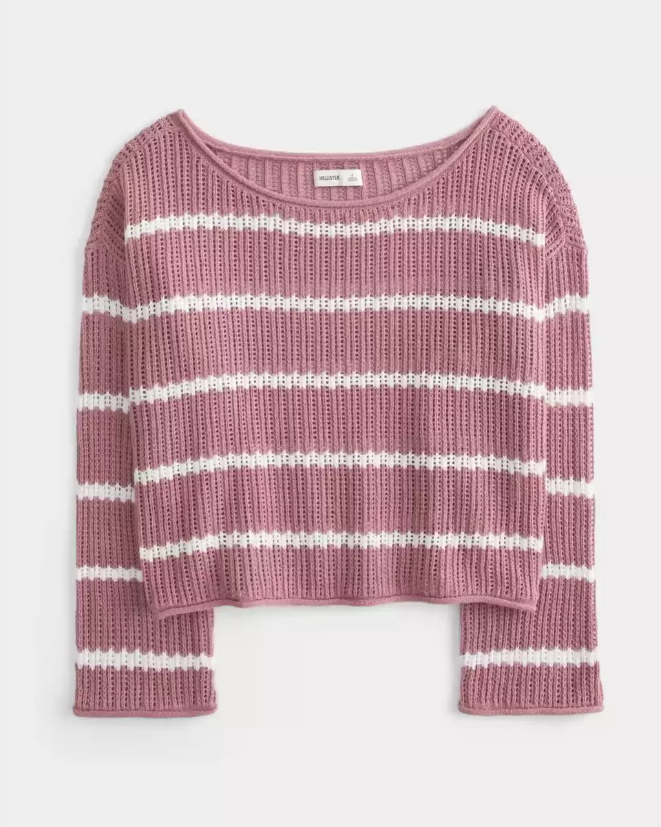 En supermjuk tröja i virkat tyg, med sömnad struktur och ett randigt mönster. Avslappnad rund halsringning, långa ärmar. Easy Fit. Importerad.