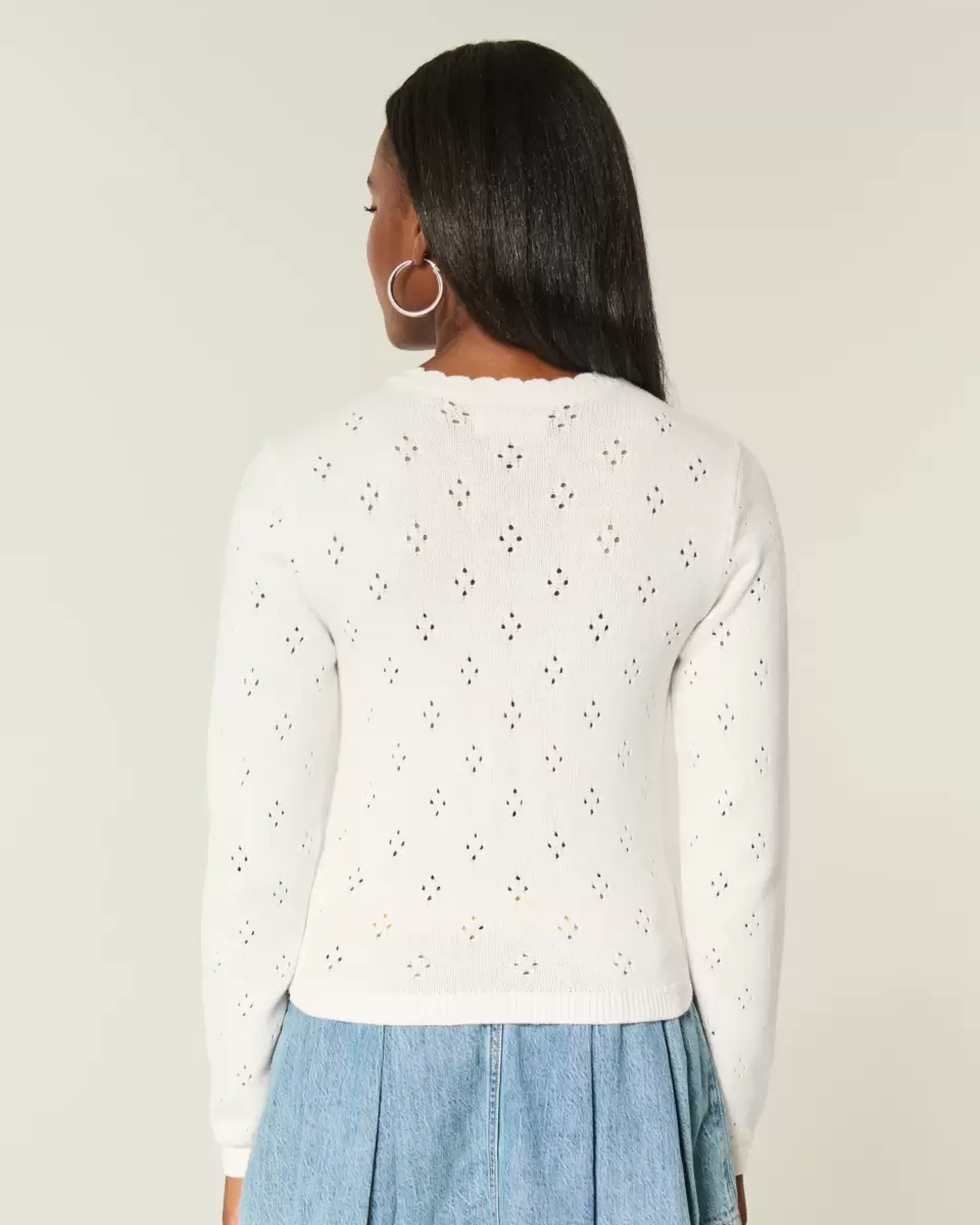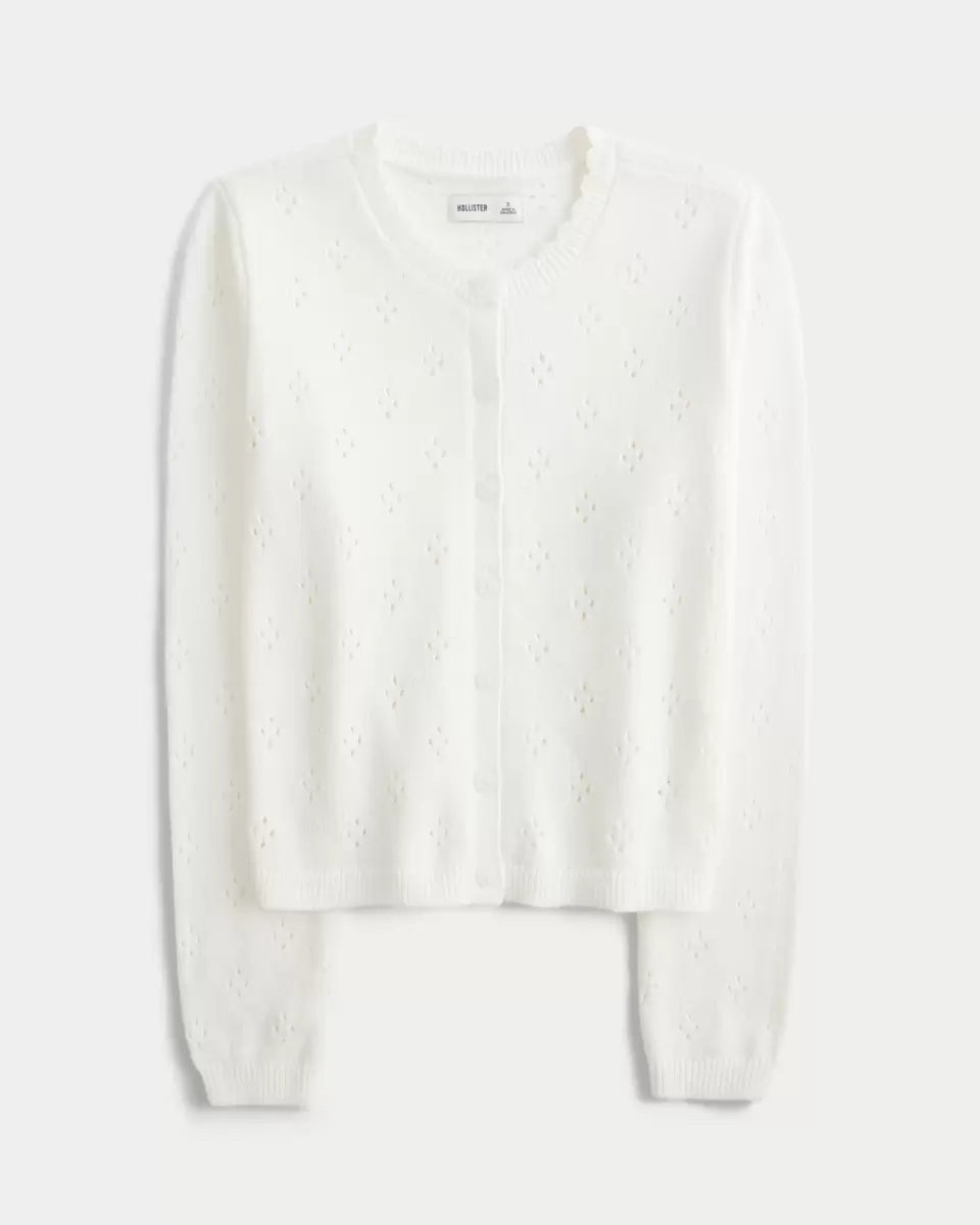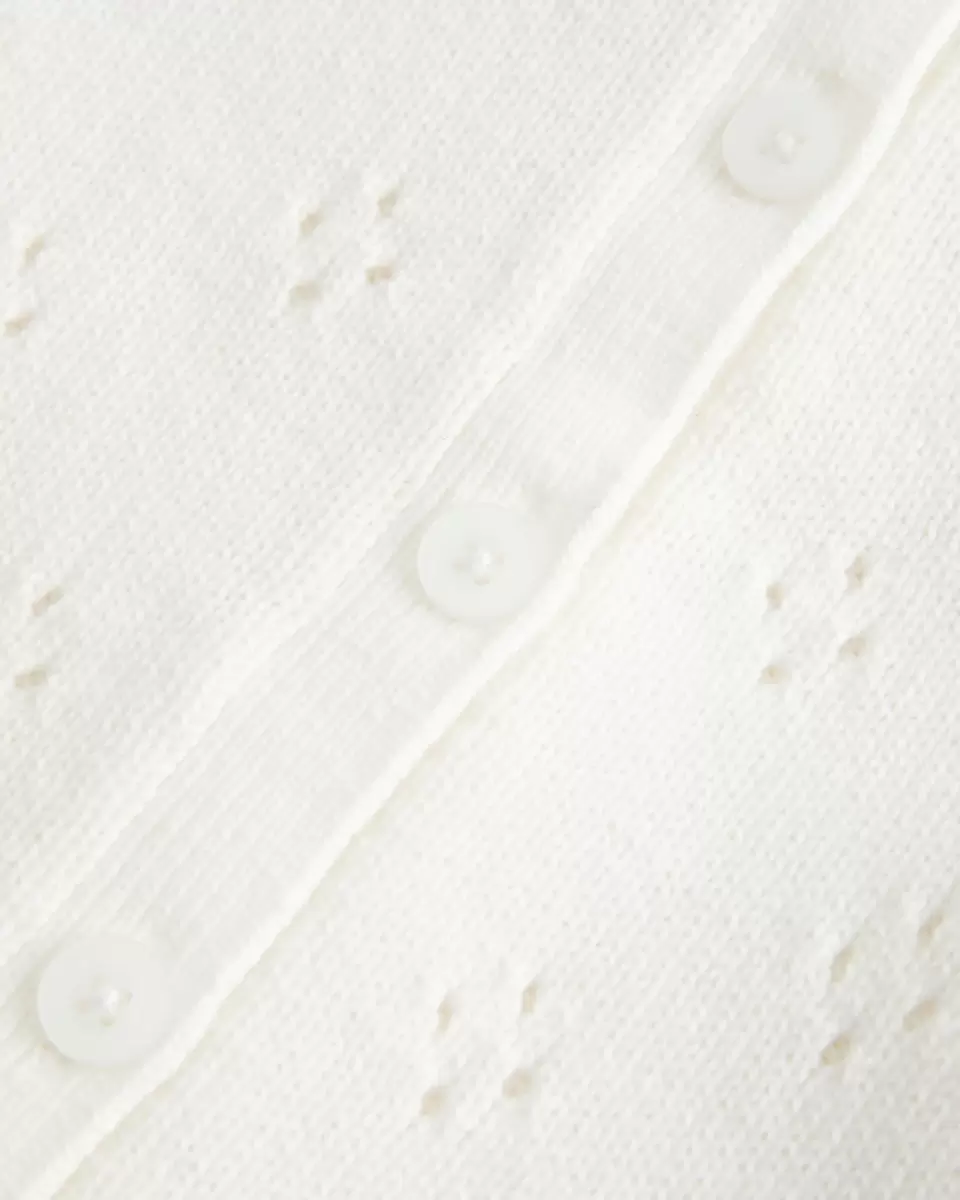 En mysig och supermjuk kofta med snygga öglormönster och en bågad rund halsringning. Hel knappstängning, ribbad kant, långa ärmar. Importerad.