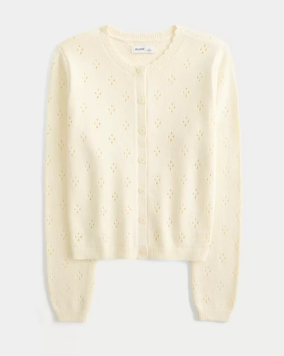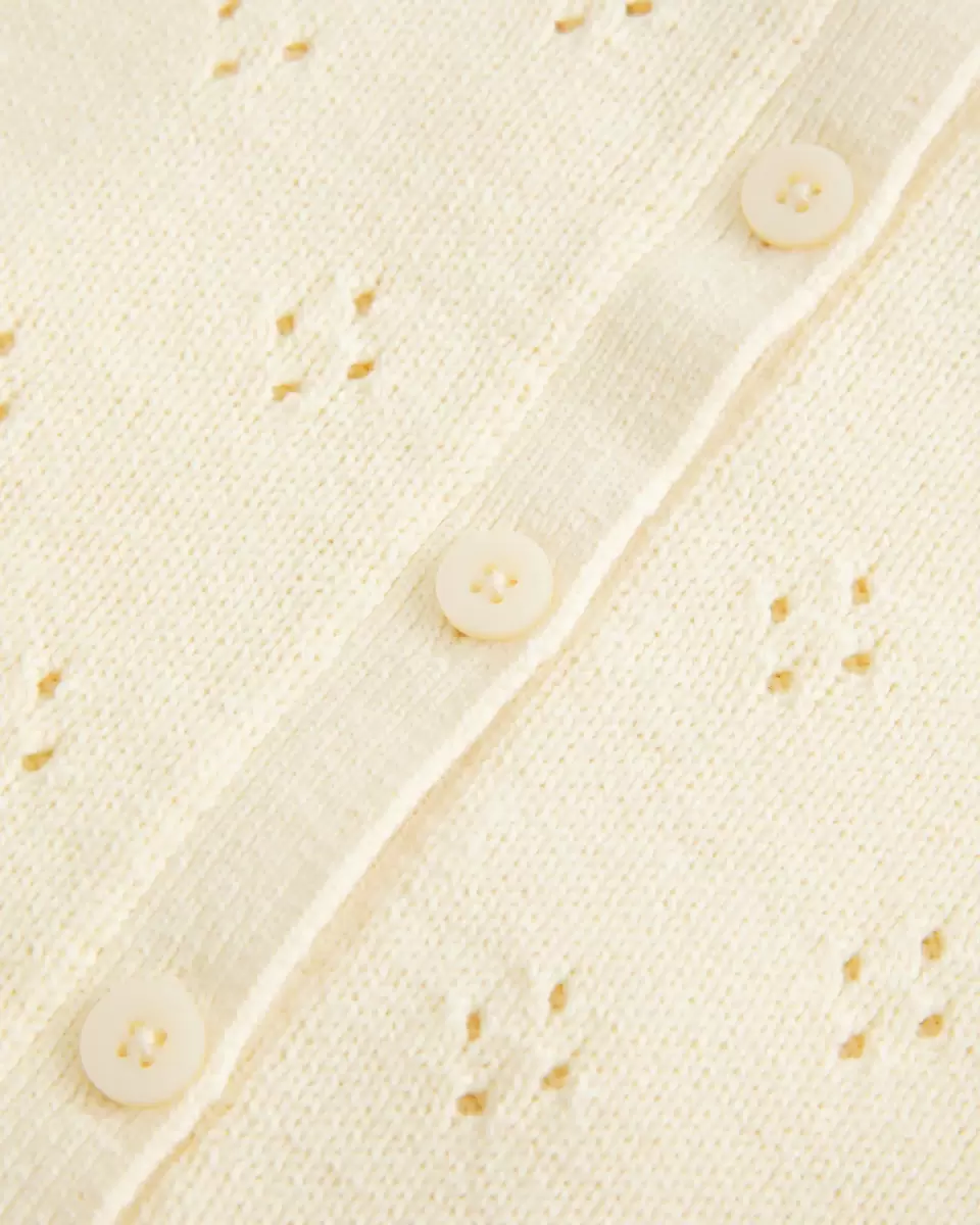 En mysig och supermjuk kofta med snygga öglormönster och en bågad rund halsringning. Hel knappstängning, ribbad kant, långa ärmar. Importerad.
