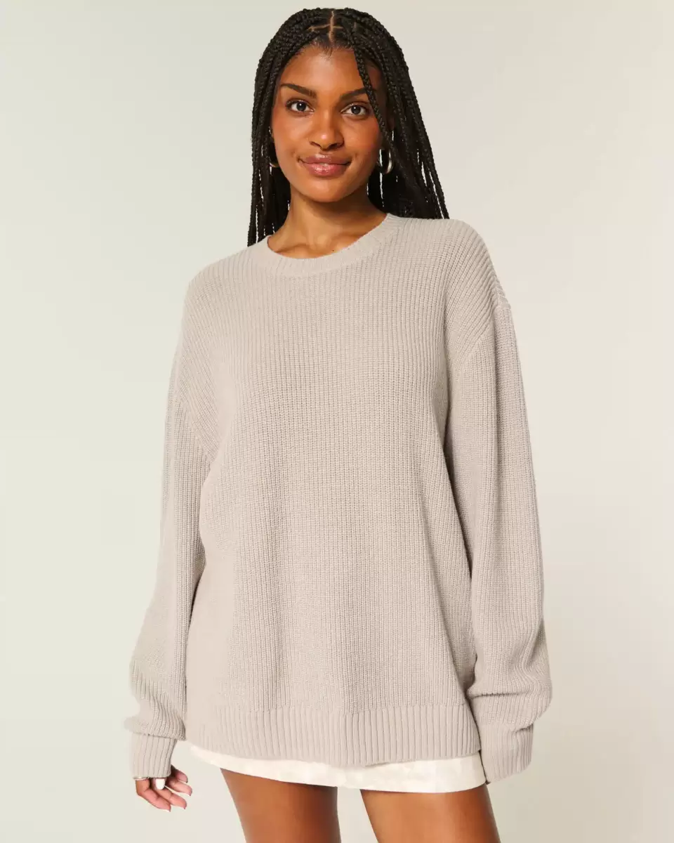 En supermjuk tröja med mysig textur, designad med en rund halsringning och långa ärmar. Ribbade kanter. Överdimensionerad passform. Importerad.