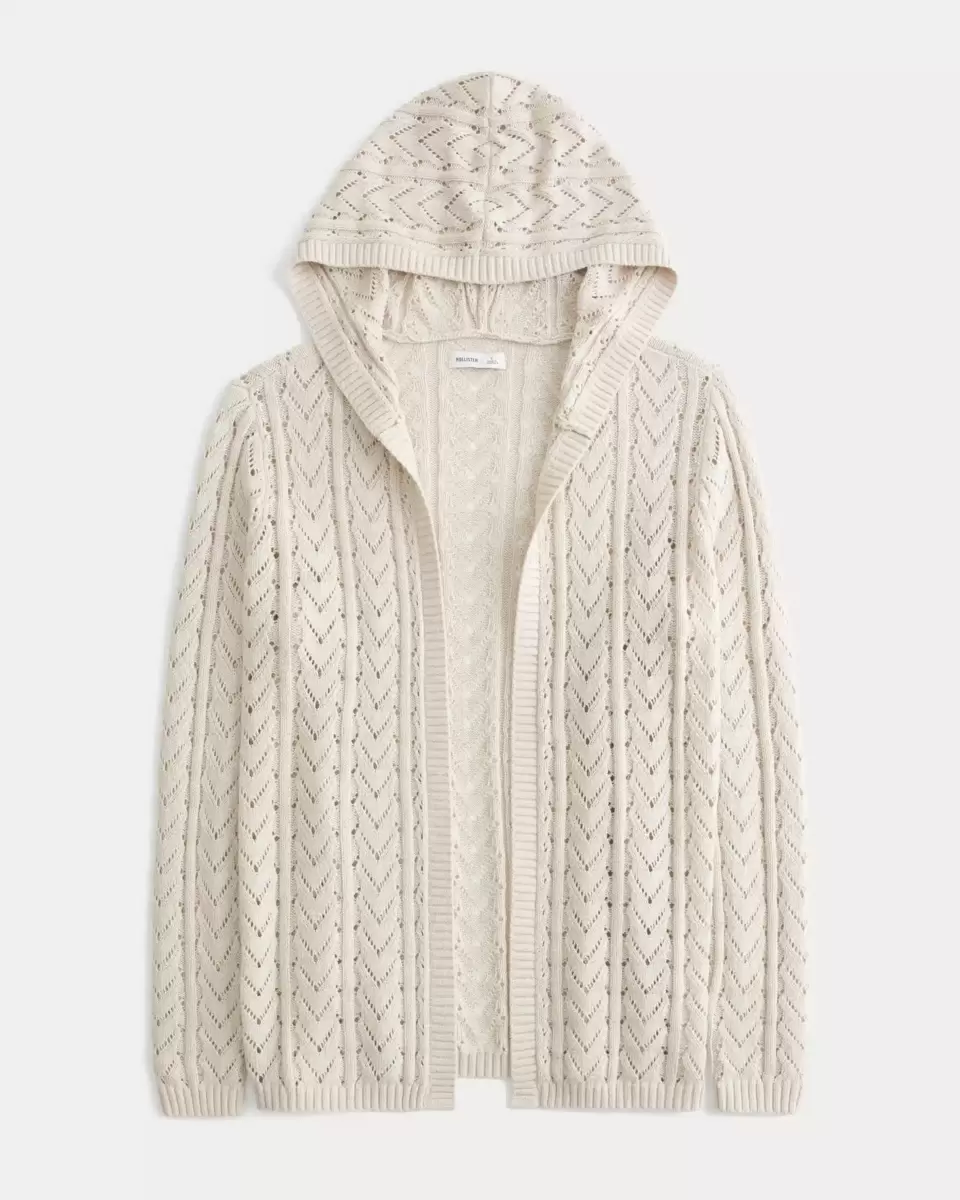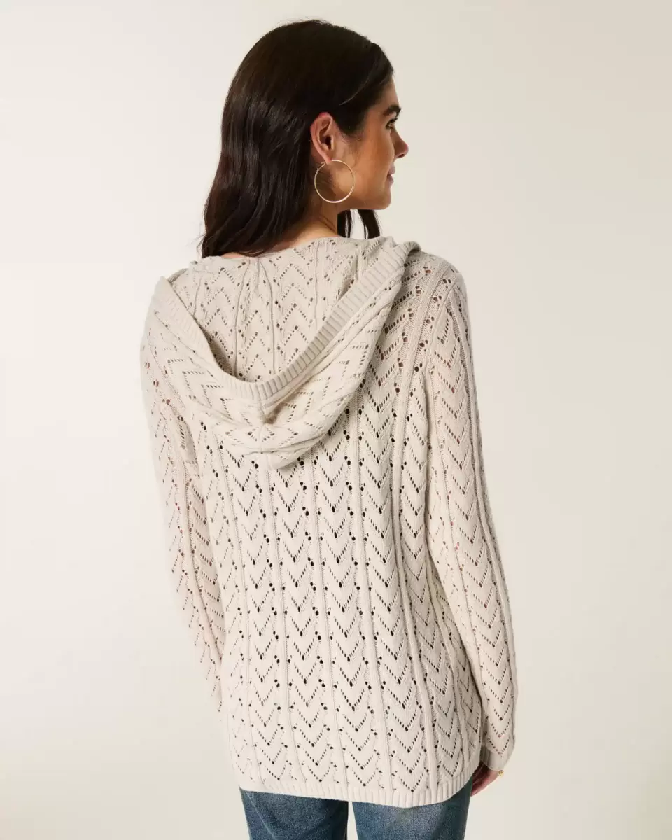 En mysig och supermjuk kofta med huva med stickade mönster och ribbkanter. Ingen stängning, långa ärmar. Slim Fit. Importerad.