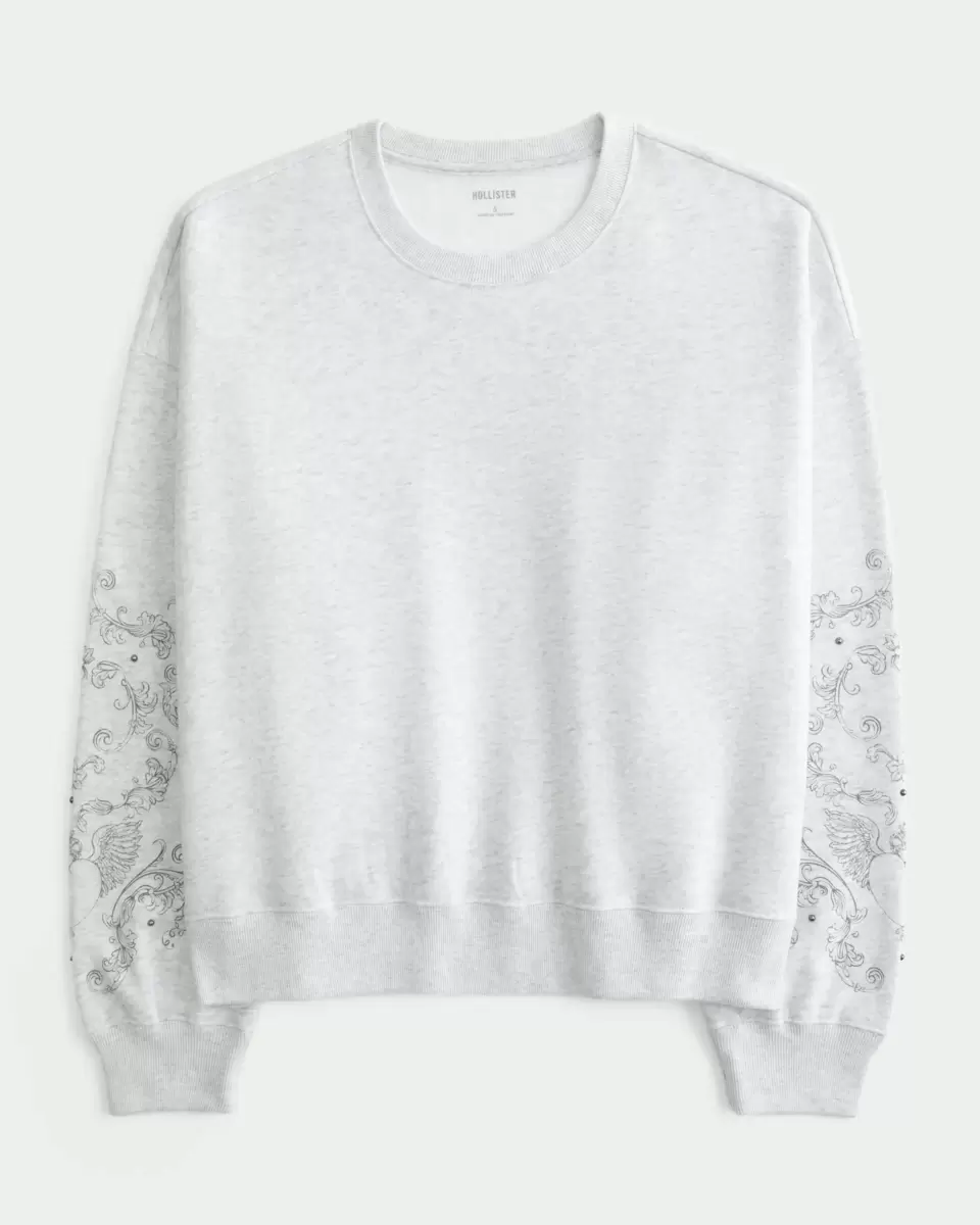 Denna supermjuka fleecetröja har tryckt grafik med nitar på ärmarna. Rund halsringning, långa ärmar. Easy Fit. Importerad.