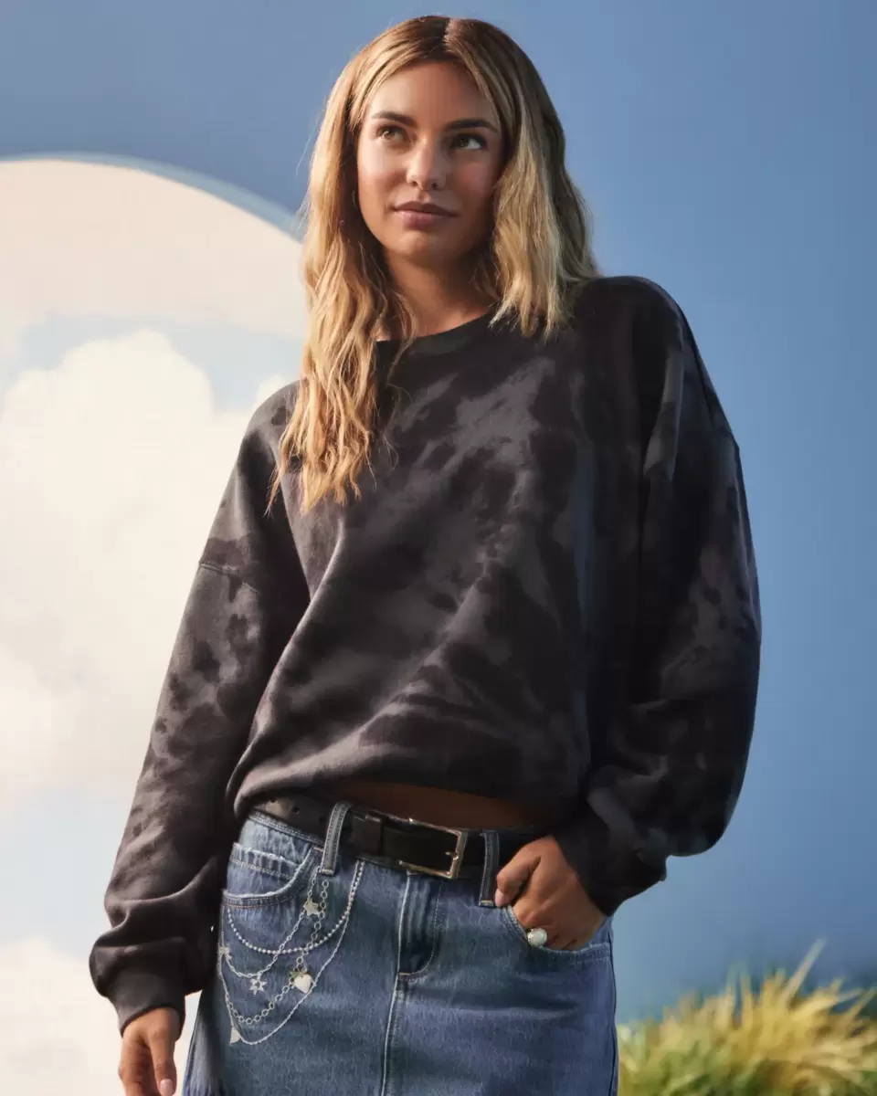 En supermjuk fleecetröja med ett heltäckande mönster i tie-dye-stil. Rund halsringning, långa ärmar. Easy Fit. Importerad.