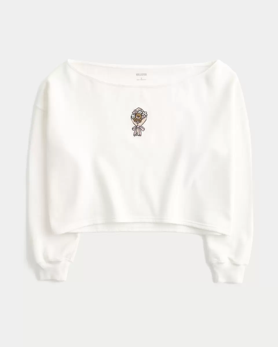 Denna supermjuka fleecetröja har en avslappnad halsringning som kan bäras av båda axlarna. Långa ärmar, söt nallebjörnsbroderi. Easy Fit. Importerad.