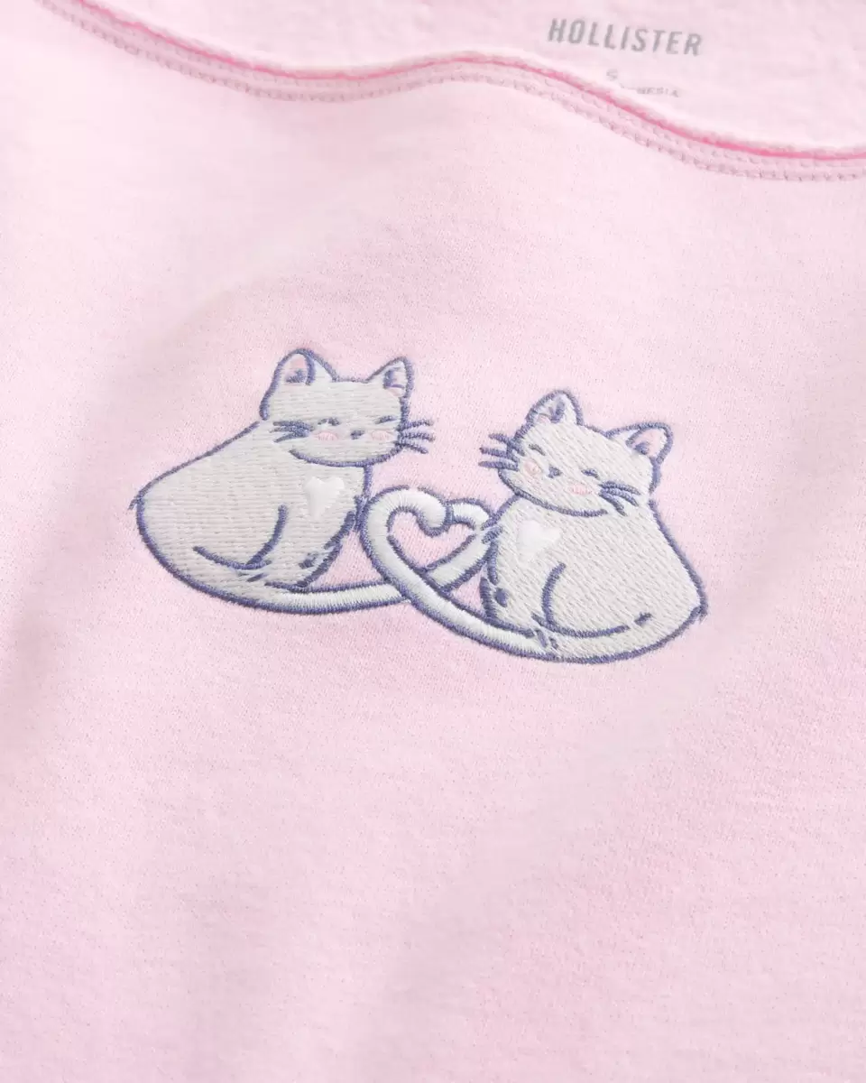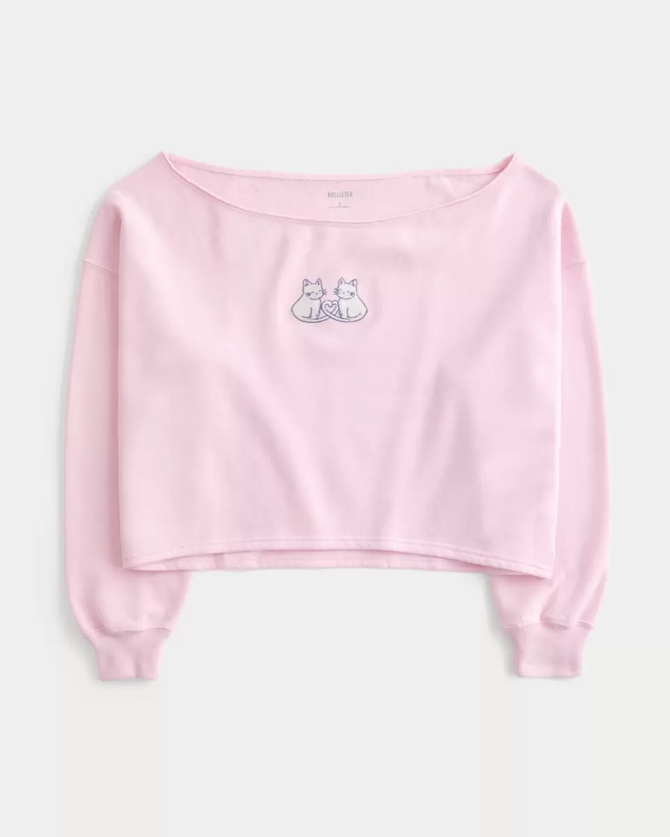 Denna supermjuka fleecetröja har en avslappnad halsringning som kan bäras av båda axlarna. Långa ärmar, söt kattgrafisk broderi. Easy Fit. Importerad.