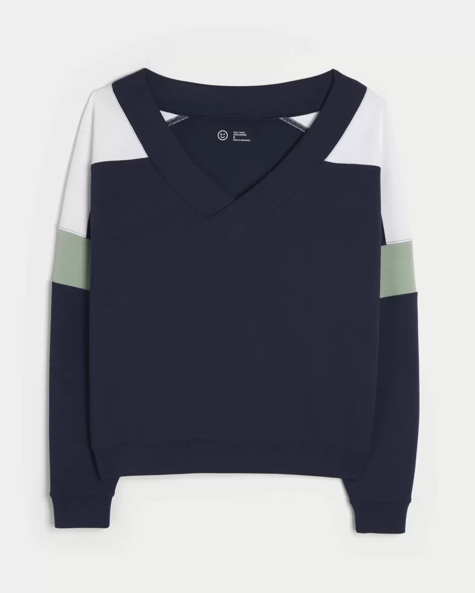 En otroligt söt och bekväm långärmad topp gjord med vårt supermjuka Cooldown-tyg. V-ringning utanför axeln.