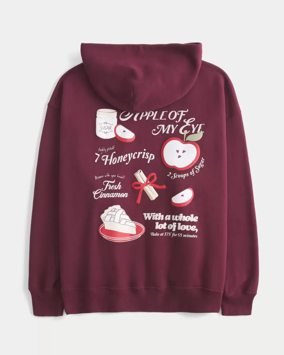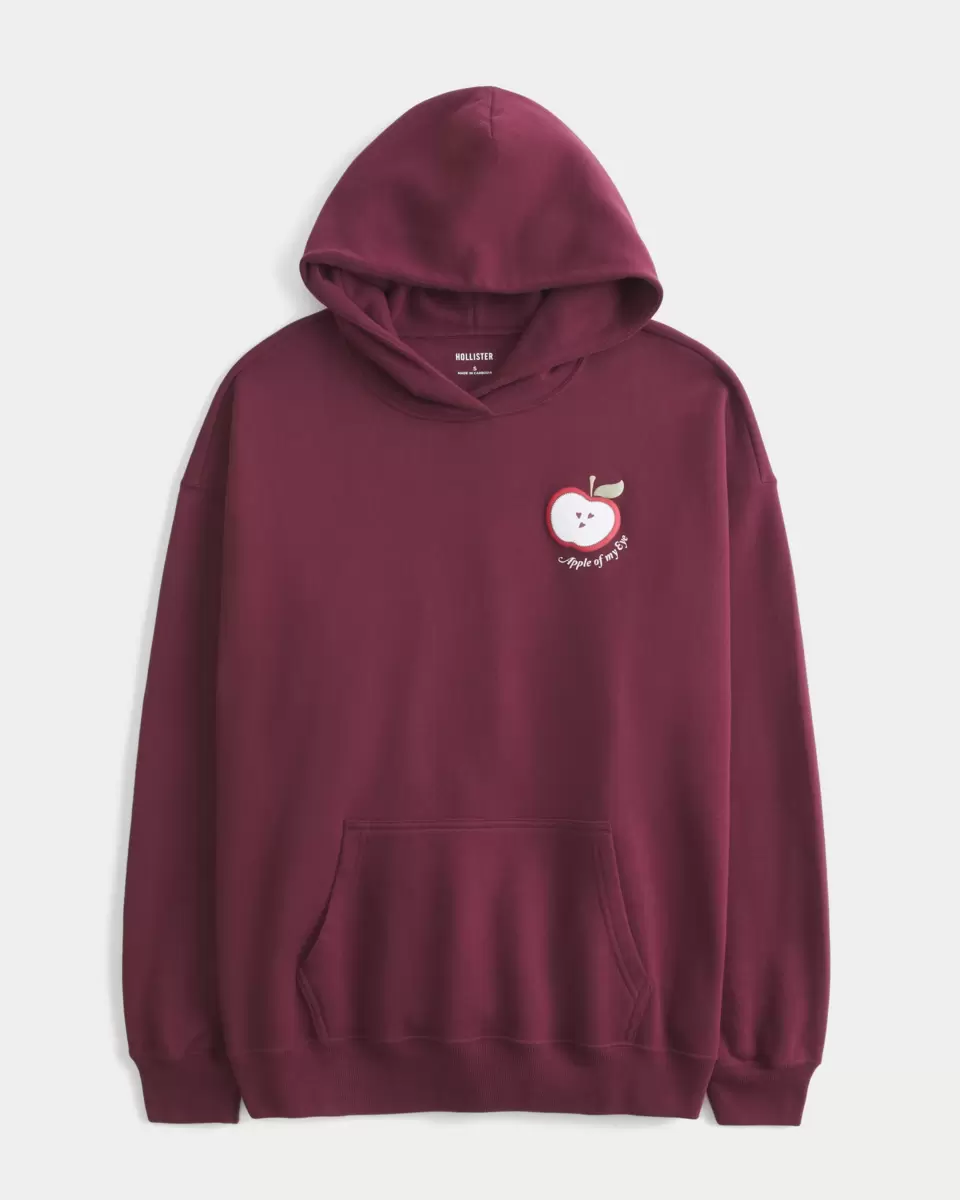 En supermjuk luvtröja i fleece med äpplegrafik på vänster bröst och rygg. Huva, ficka framtill, långa ärmar. Importerad.