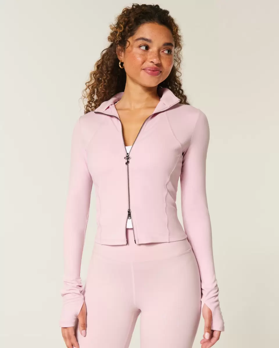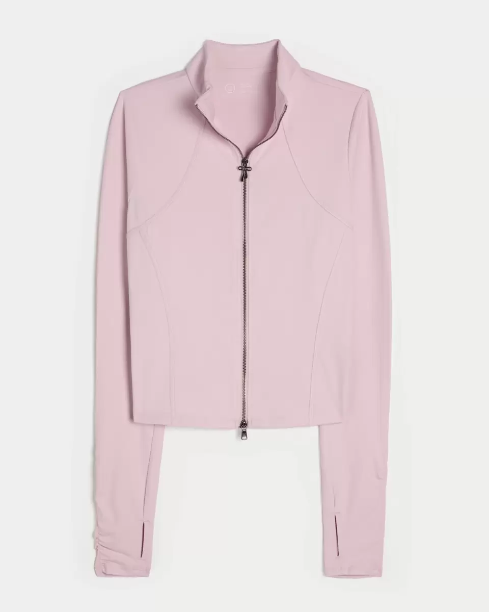 Designat i vårt andningsbara, 4-vägs stretch, fukttransporterande Recharge-tyg med en supermjuk, borstad känsla. Dubbel dragkedja med rosettdetalj, fickor fram, långa ärmar med rynkade detaljer och tumöppningar. Importerad.