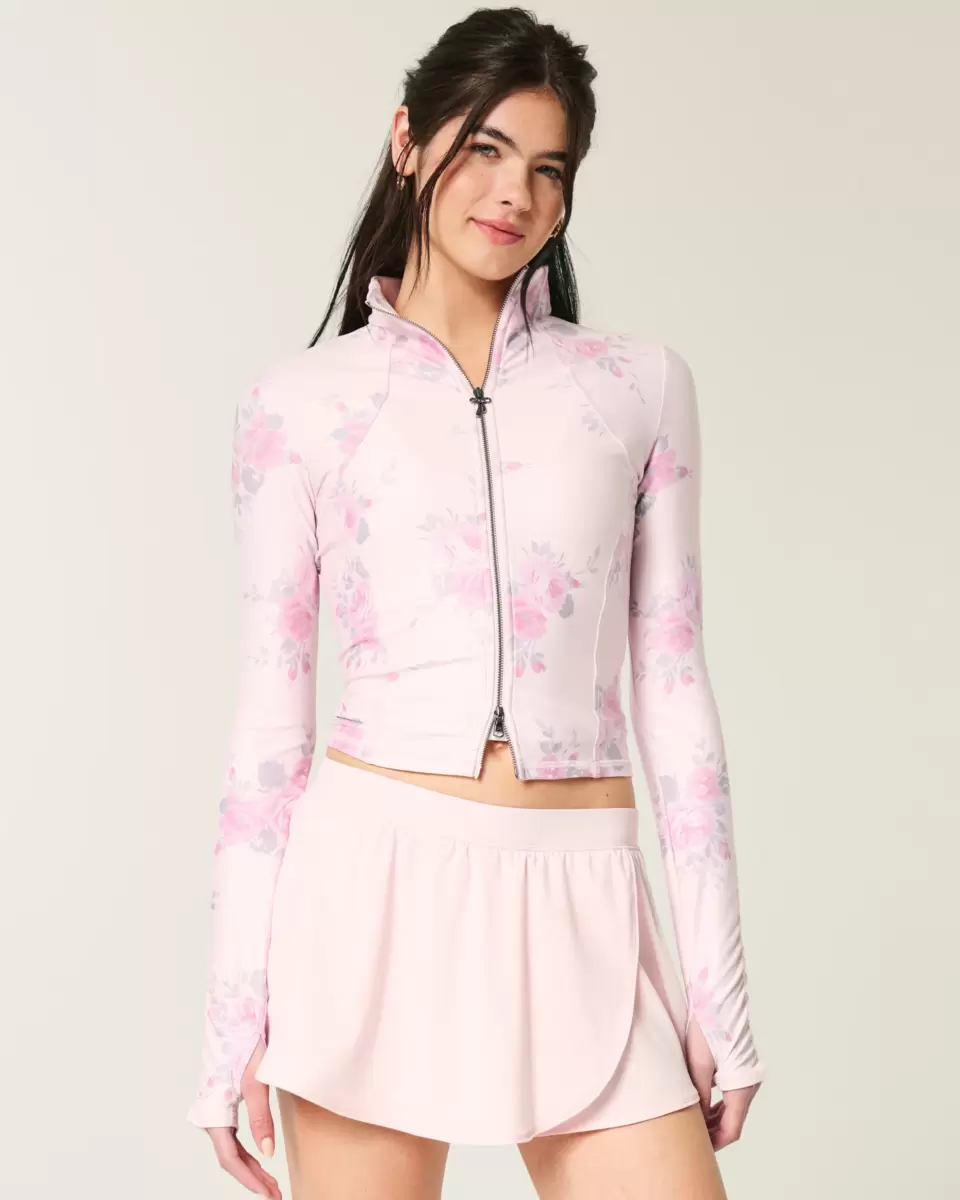 Designat i vårt andningsbara, 4-vägs stretch, fukttransporterande Recharge-tyg med en supermjuk, borstad känsla. Dubbla dragkedja, fickor fram, långa ärmar med rynkade detaljer och tumöppningar. Slim Fit. Importerad.