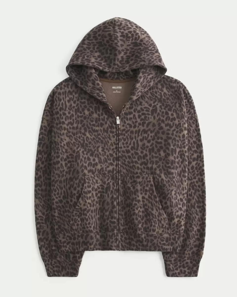 En supermjuk luvtröja i fleece med ett heltäckande leopardmönster och en hel dragkedja. Framfickor, långa ärmar, huva. Överdimensionerad passform. Importerad.