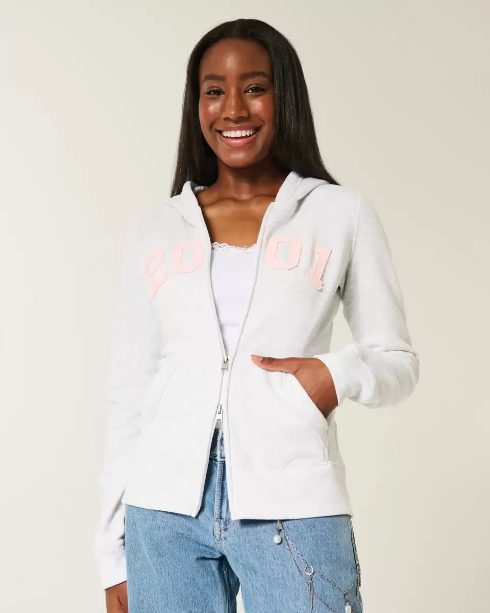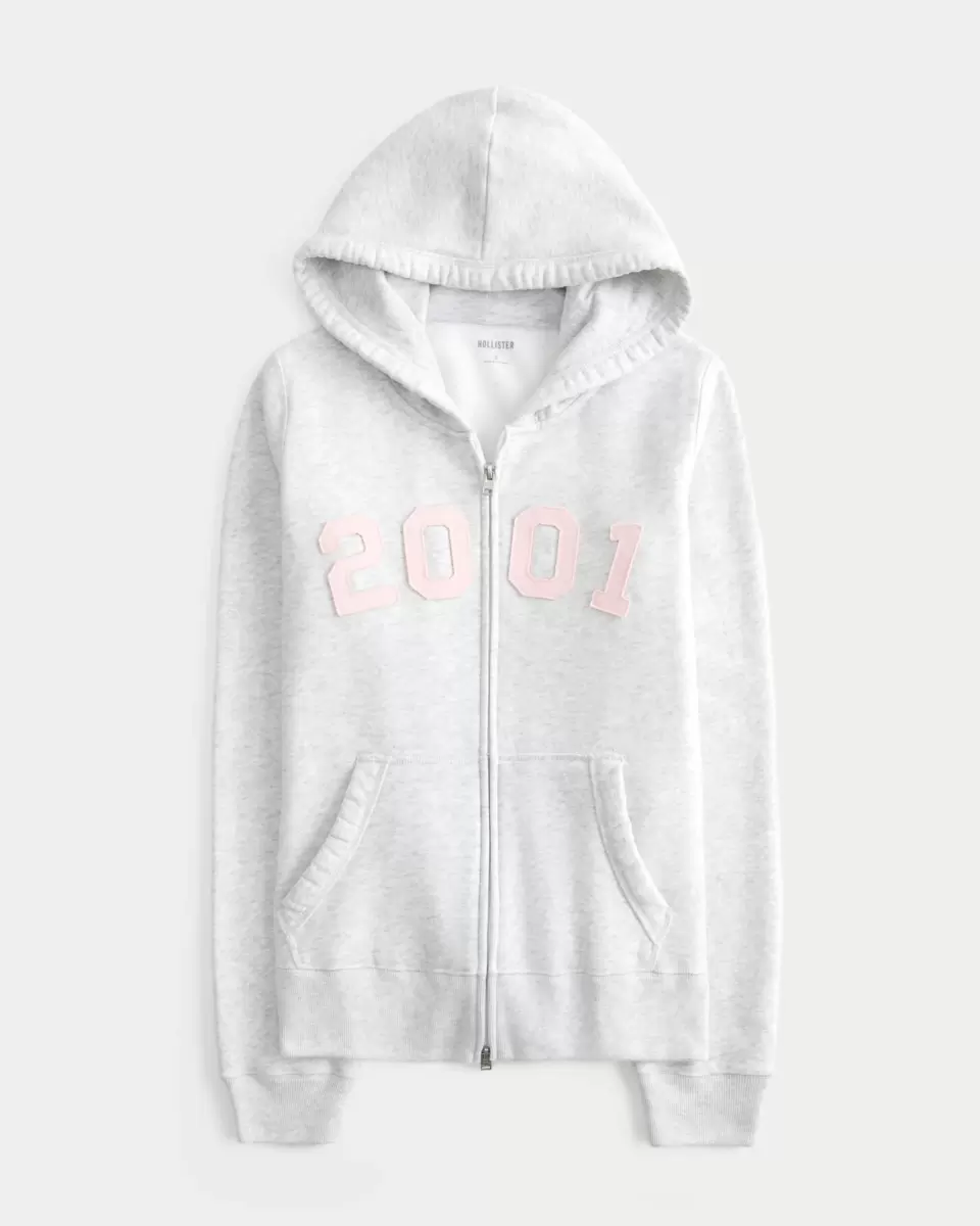 En supermjuk luvtröja i fleece med 2001 grafisk applikation. Hel dragkedja, långa ärmar, fickor fram, huva. Slim Fit. Importerad.