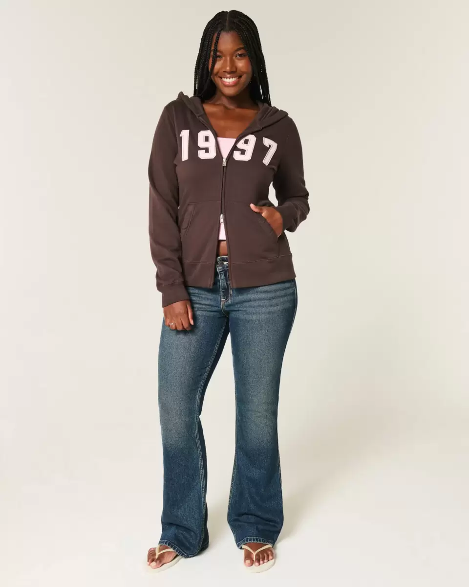 En supermjuk luvtröja i fleece med grafisk applikation från 1997. Hel dragkedja, långa ärmar, fickor fram, huva. Slim Fit. Importerad.