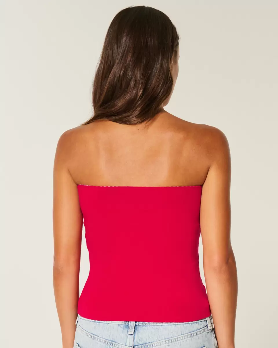 Denna söta och bekväma vändbara tubtopp är gjord i en supermjuk bomullsblandning. Ser fantastiskt ut hopvikt och inte hopvikt. Fyra sätt att bära denna måste-topp, som visas på bilderna! Slim Fit. Importerad.