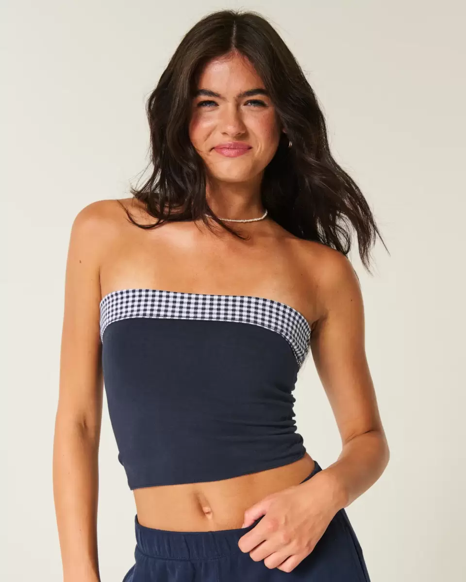 Denna söta och bekväma vändbara tubtopp är gjord i en supermjuk bomullsblandning. Ser fantastiskt ut hopvikt och inte hopvikt. Fyra sätt att bära denna måste-topp, som visas på bilderna! Slim Fit. Importerad.