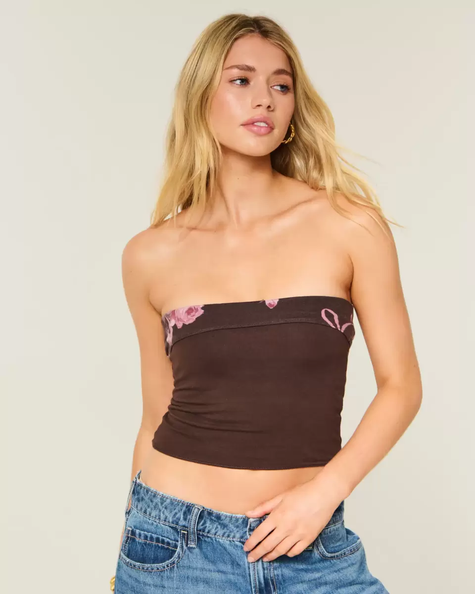 Denna söta och bekväma vändbara tubtopp är gjord i en supermjuk bomullsblandning. Ser fantastiskt ut hopvikt och inte hopvikt. Fyra sätt att bära denna måste-topp, som visas på bilderna! Slim Fit. Importerad.