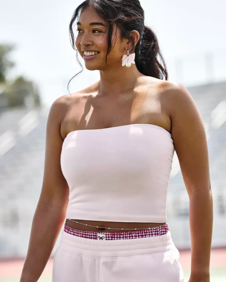 Denna söta och bekväma vändbara tubtopp är gjord av en supermjuk bomullsblandning. Ser fantastiskt ut hopvikt och inte hopvikt. Fyra sätt att bära denna måste-topp, som visas i
