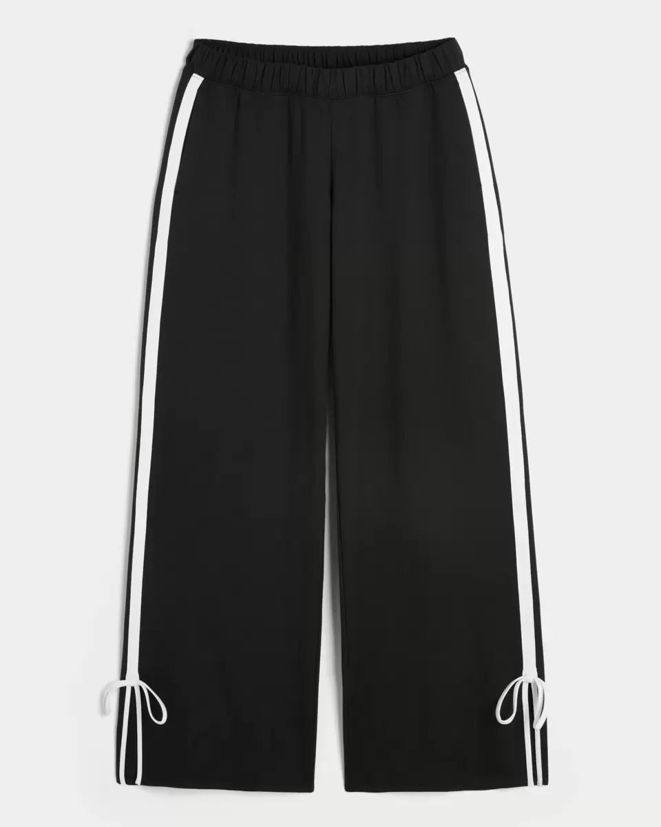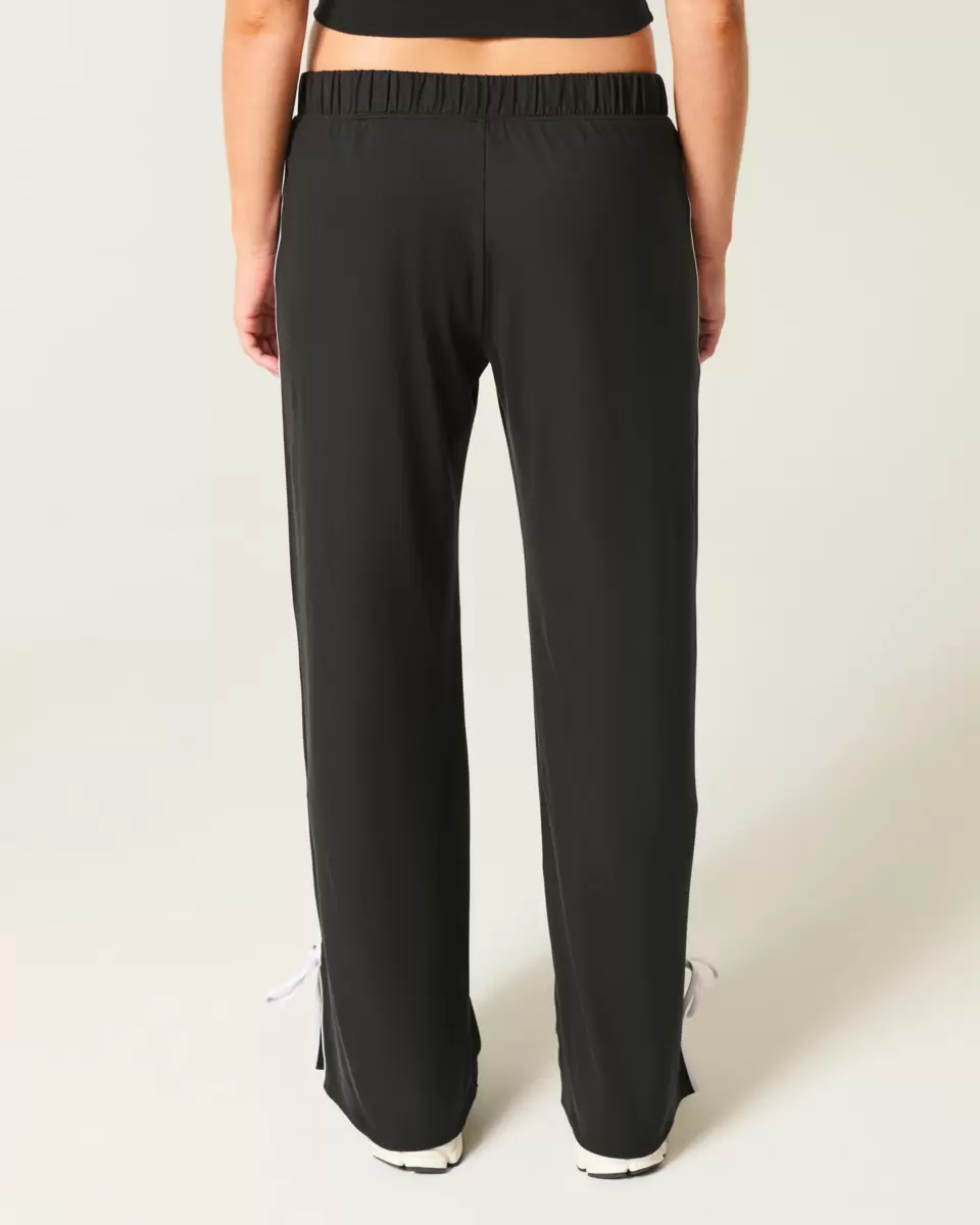 Supermjuka aktiva byxor designade med en baggy siluett, bandad midja och sidobågedetaljer.