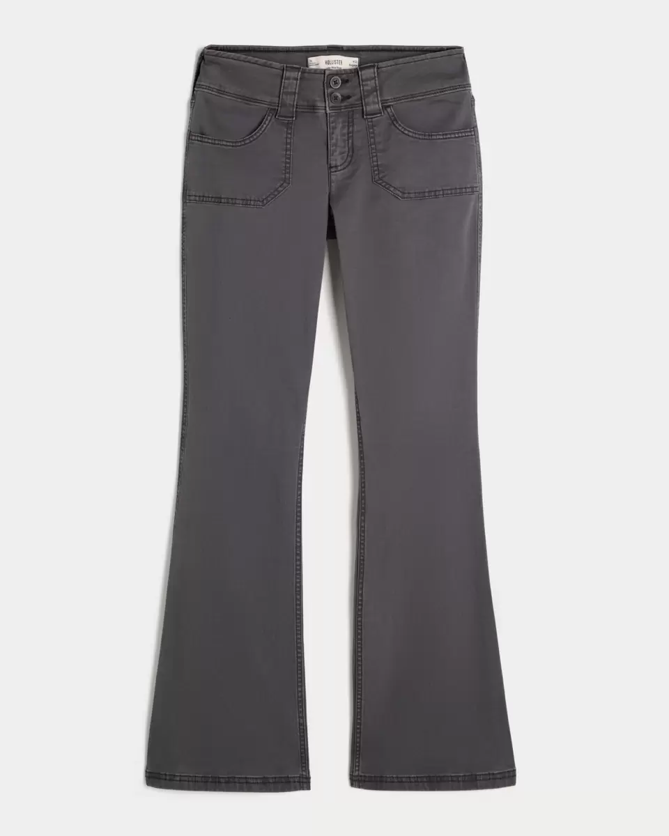Bekväma twillbyxor designade med en låg midja, smala ben och stövelfåll. Fickor, bakfickor med lock och knappstängning. Importerad.