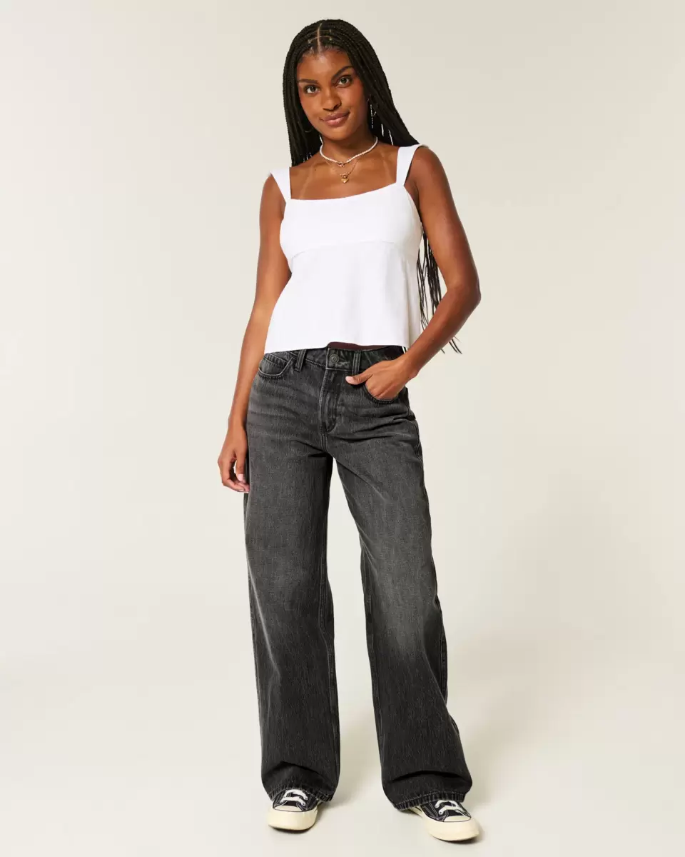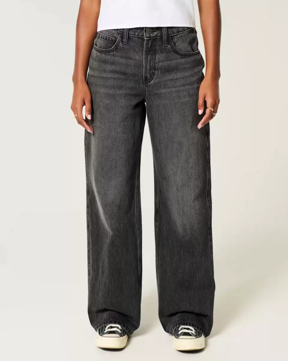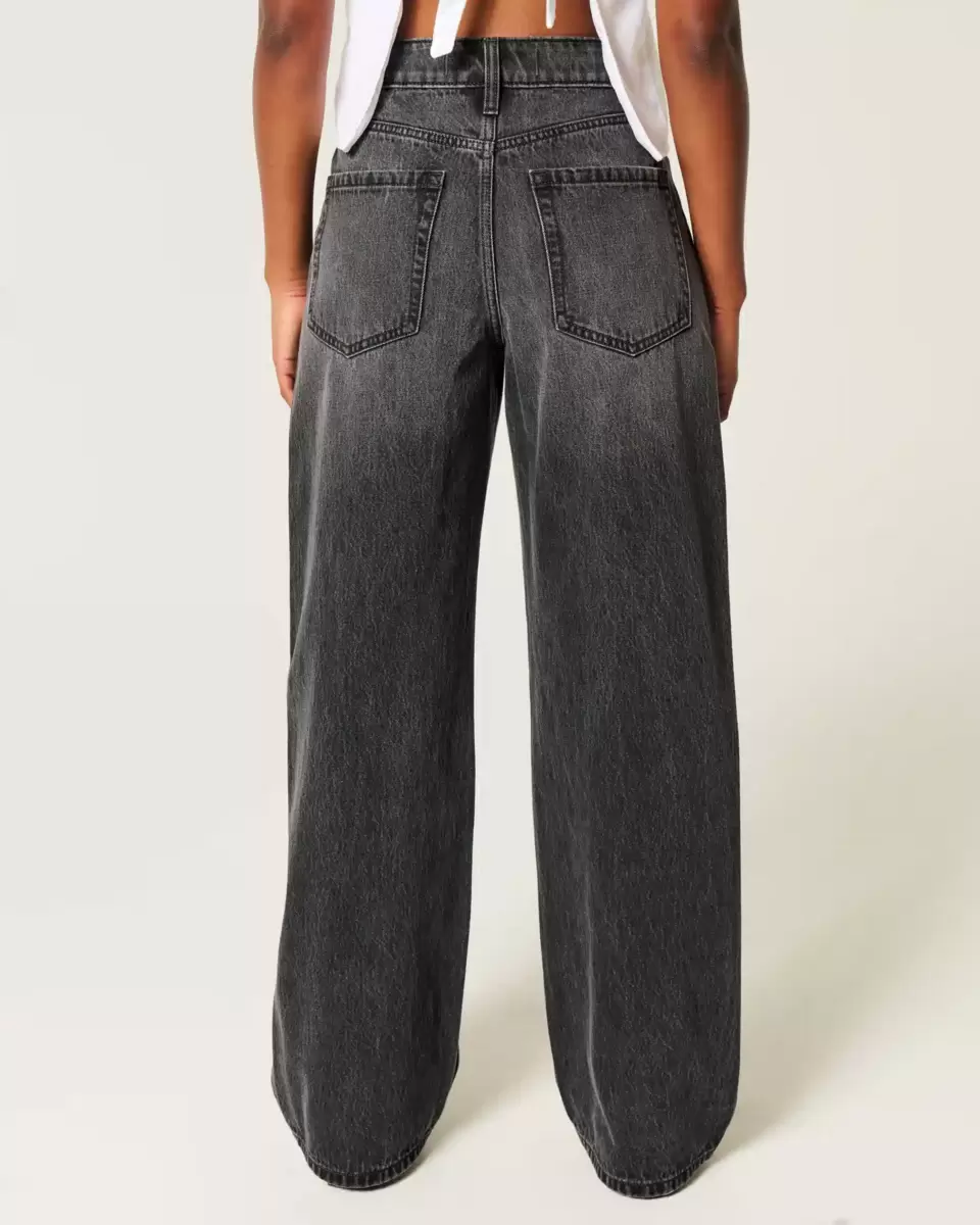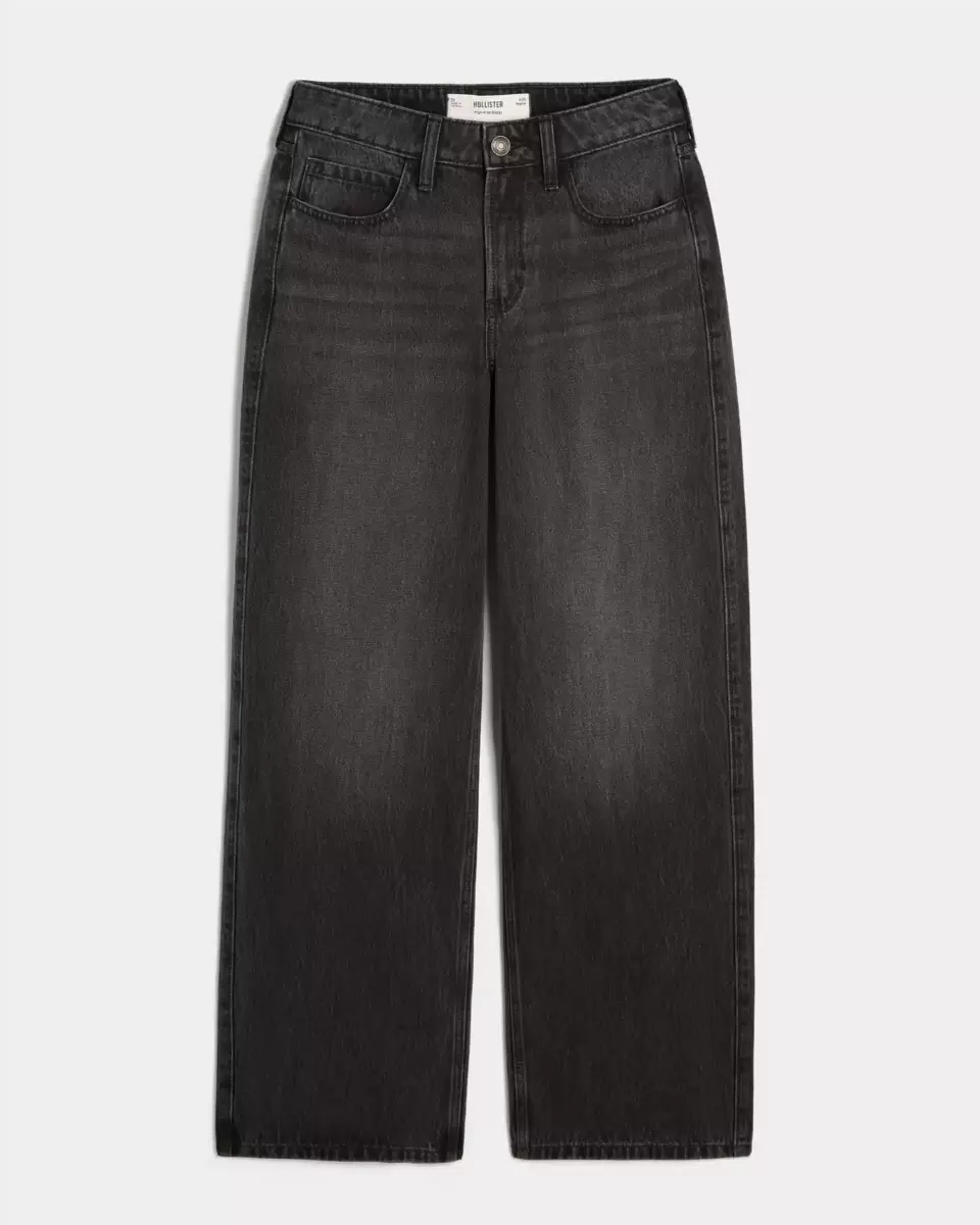 Bekväma denimjeans designade med en smickrande hög midja och baggy ben. Tvättad svart med blekning och morrhår. Importerad.