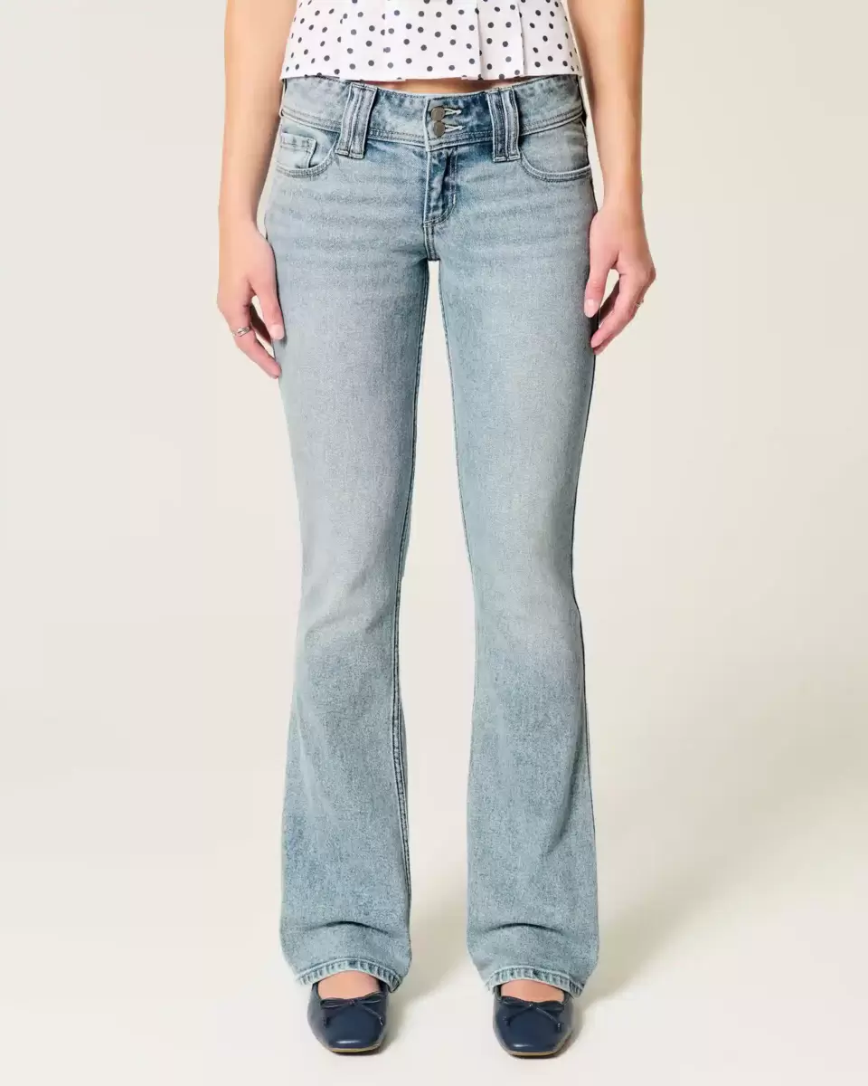 Bekväma, Y2K-inspirerade denimjeans designade med en låg midja, smala ben och öppning för bootcut. Blekning och morrhår. Importerad.